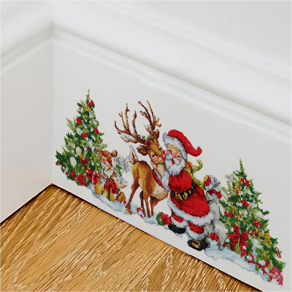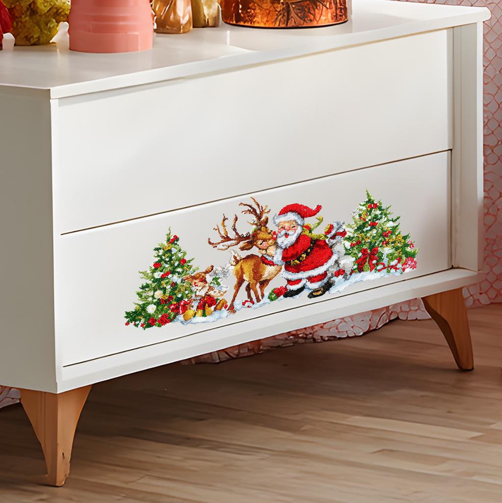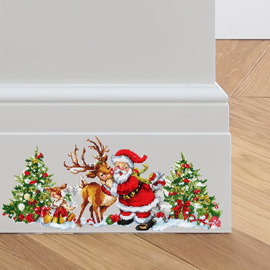 Наклейки на стену «Санта-Клаус, Рождественская елка, Олень», Рождественское украшение комнаты, Наклейки на стену