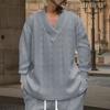 Осень-зима Cross Border Повседневный жаккардовый трикотаж Мужская весенне-осенняя свободная футболка с длинным рукавом Мужские пуловеры с V-образным вырезом Топы