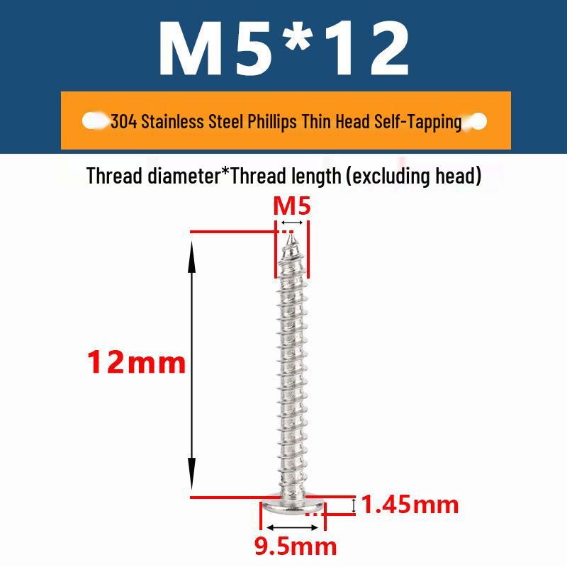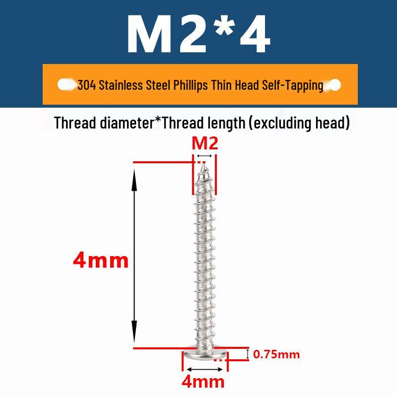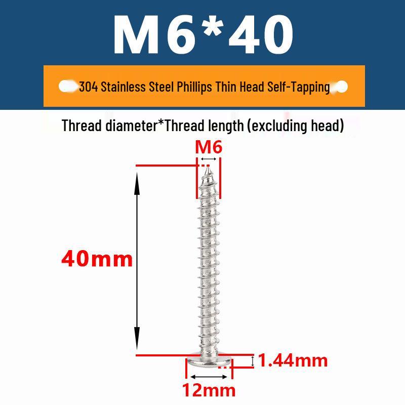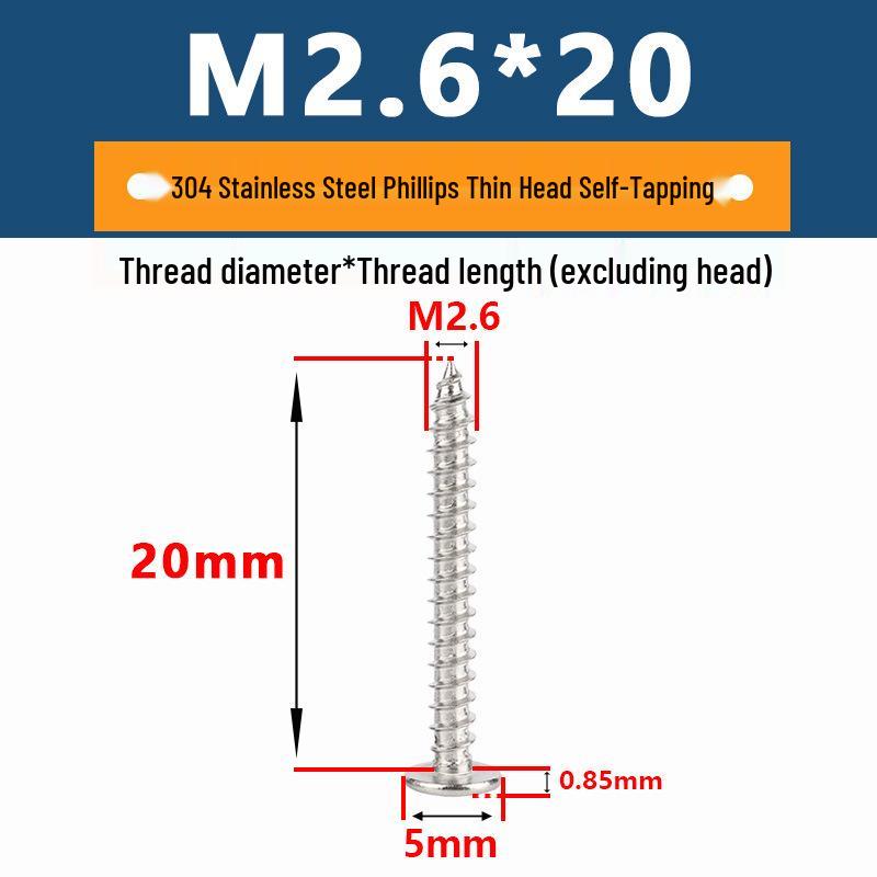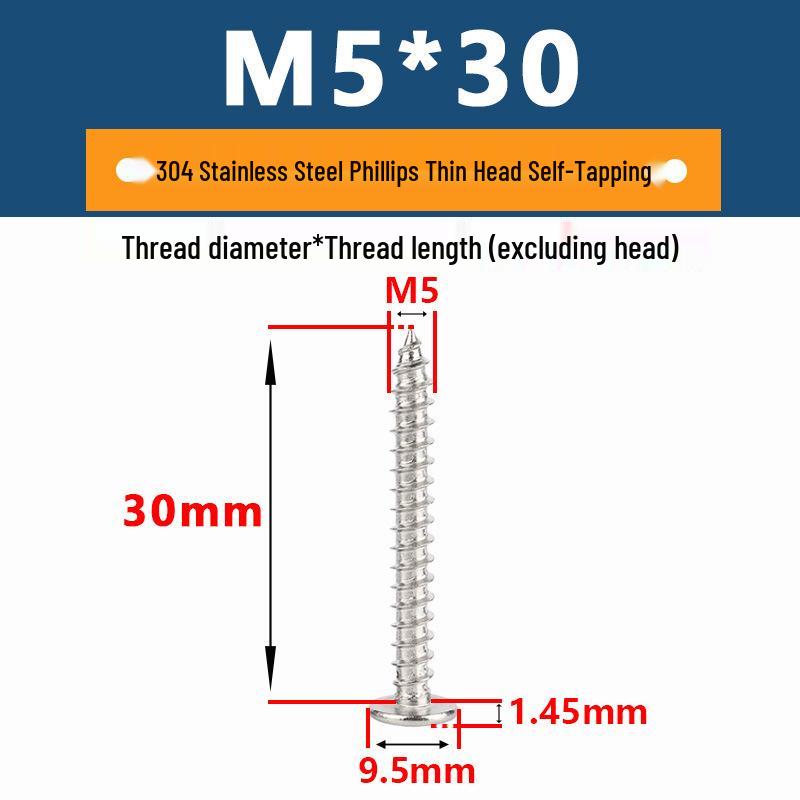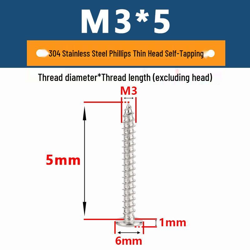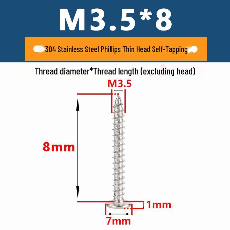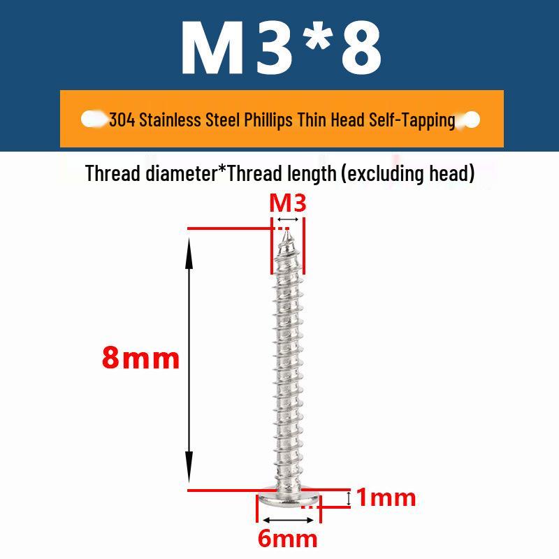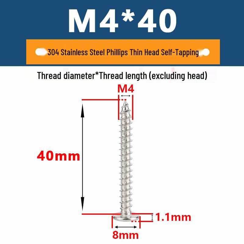 Yigu 304 Stainless Steel Phillips Thin Flat Head Self-Tapping Screw M2-M8, Countersunk Pointed Tail