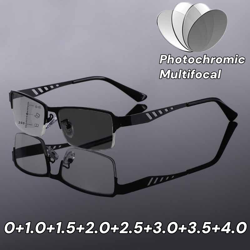 Мужские бизнес фотохромные мультифокальные очки для чтения Мужские прогрессивные очки для бизнеса с защитой от синего света Полуободковые +1.0+2.5