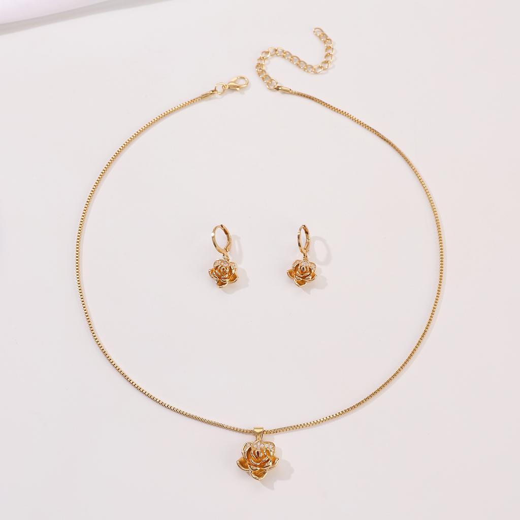 2025 Легкая Роскошь Циркон Розовый Набор Аксессуары ins Мода Цветок Ожерелье Серьги Кольцо Аксессуары Оптом