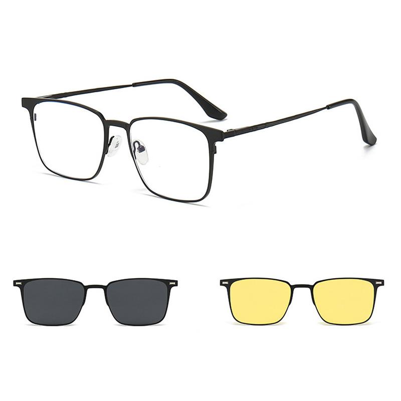 2+1 Мужская Мода Оправа для Очков из Сплава с Поляризованными Солнцезащитными Очками-Клипсами и Очками для Ночного Видения Женские Очки