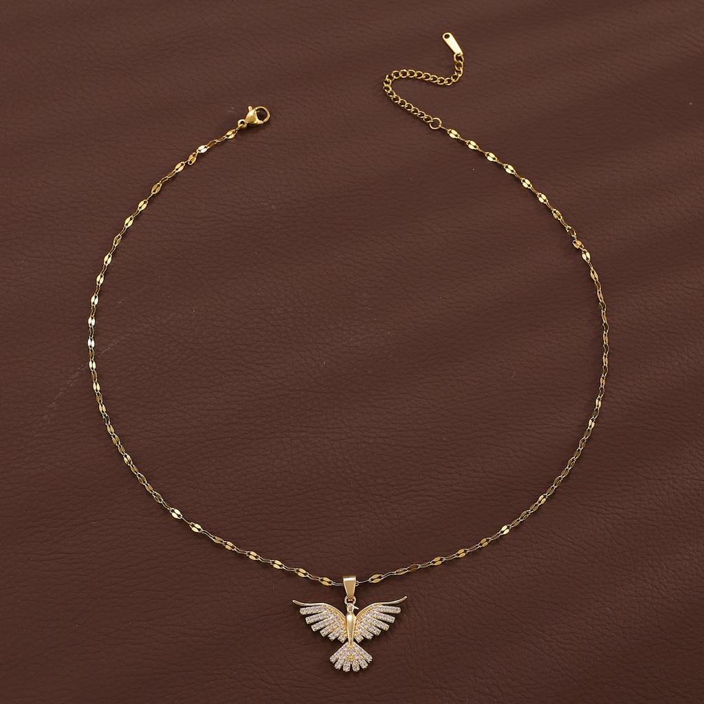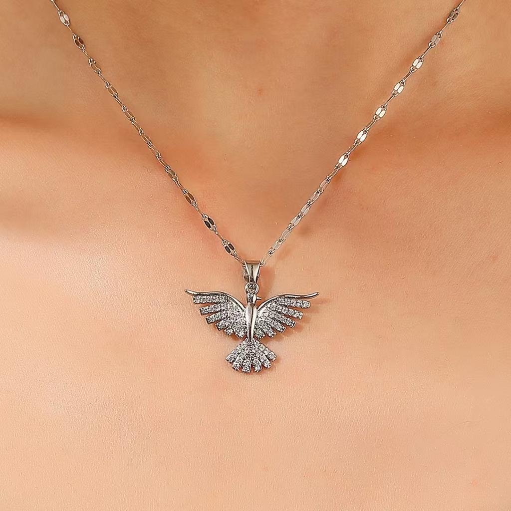 Ожерелье для банкета и свадьбы в стиле легкой роскоши с крыльями феникса, женское, популярное в интернете, дикая цепочка на ключицу, медный кулон с диким орлом и цирконами