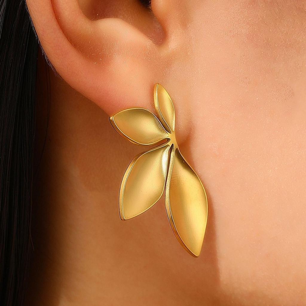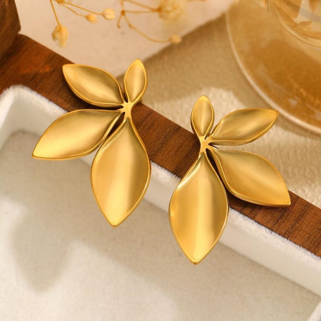 Высококачественные новые серьги-пусеты из нержавеющей стали в виде цветка и листа 2026, универсальные модные серьги-пусеты в виде нового листа, трендовые серьги