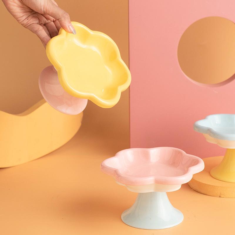 Керамическая приподнятая миска для кошек с подставкой для защиты шеи, приподнятая миска для еды и воды с цветочным дизайном, миска для закусок