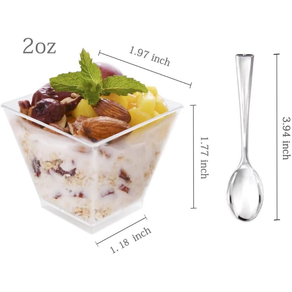 2 унции квадратный десертный стаканчик одноразовый прозрачный стаканчик для мусса с ложкой вечеринка праздник свадьба десерт пудинг желе миска для мороженого