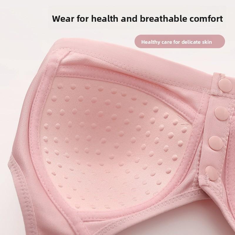 Бюстгальтер для кормления большого размера с застежкой спереди и V-образным вырезом. Дышащий, с боковой поддержкой, без косточек. Подходит для матерей среднего возраста.