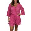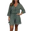 2 шт./компл., женский топ, шорты, комплект, ажурное кружево, цветочная вышивка, V-образный вырез, шнурок, рукава три четверти, эластичная высокая талия, свободные свидания, поездки на работу — купить товар онлайн с бесплатной доставкой по всему миру!