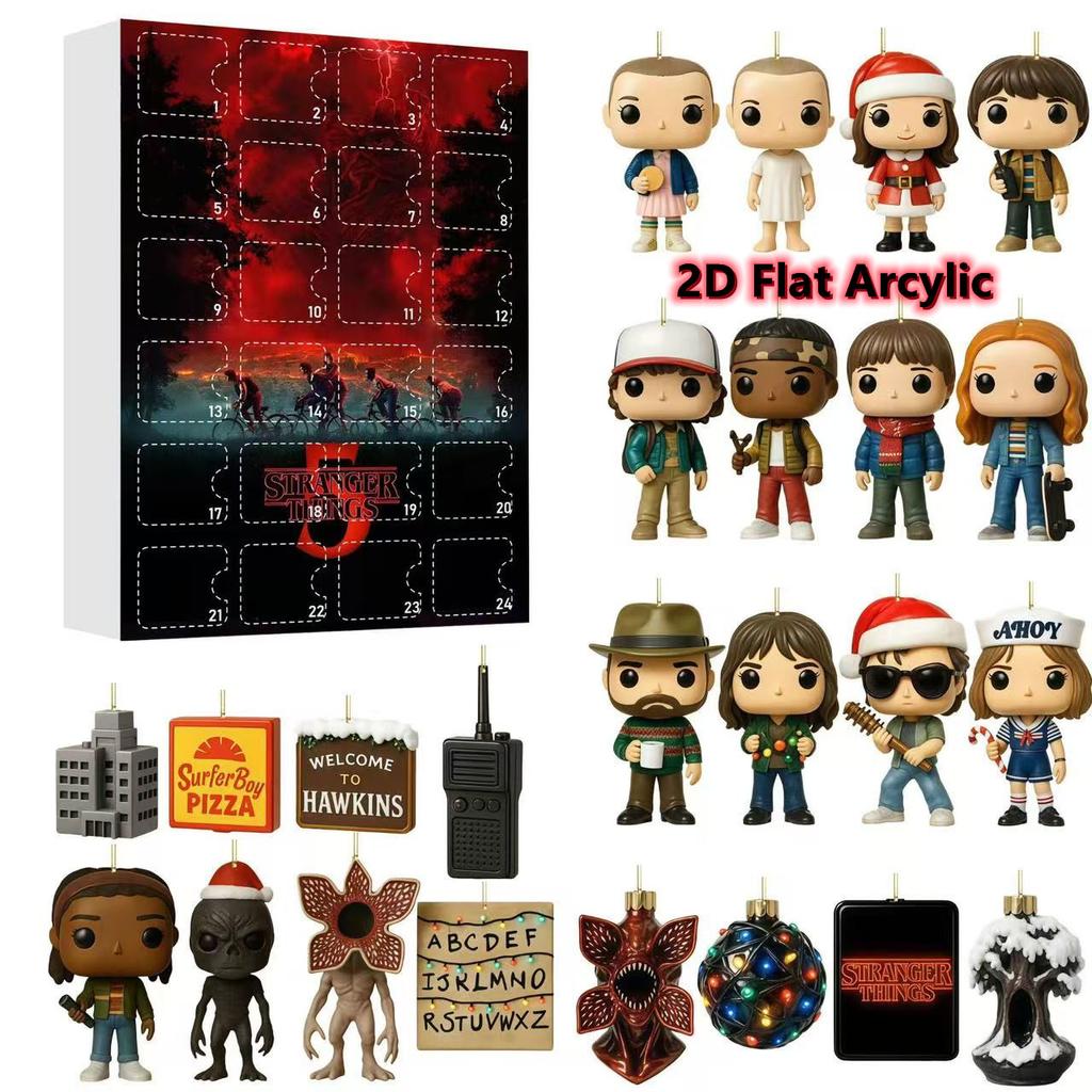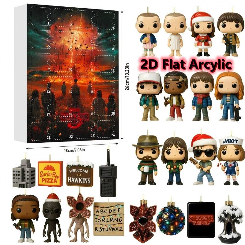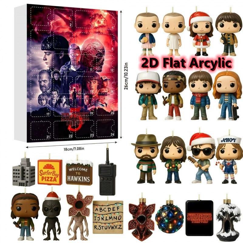Календарь ожидания «Очень странные дела» на 24 дня с плоскими акриловыми 2D-персонажами и аксессуарами