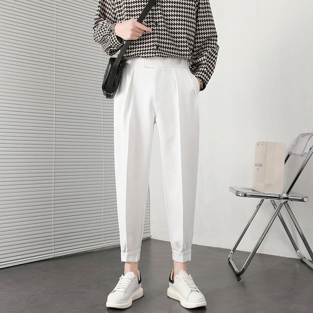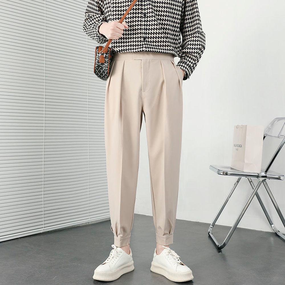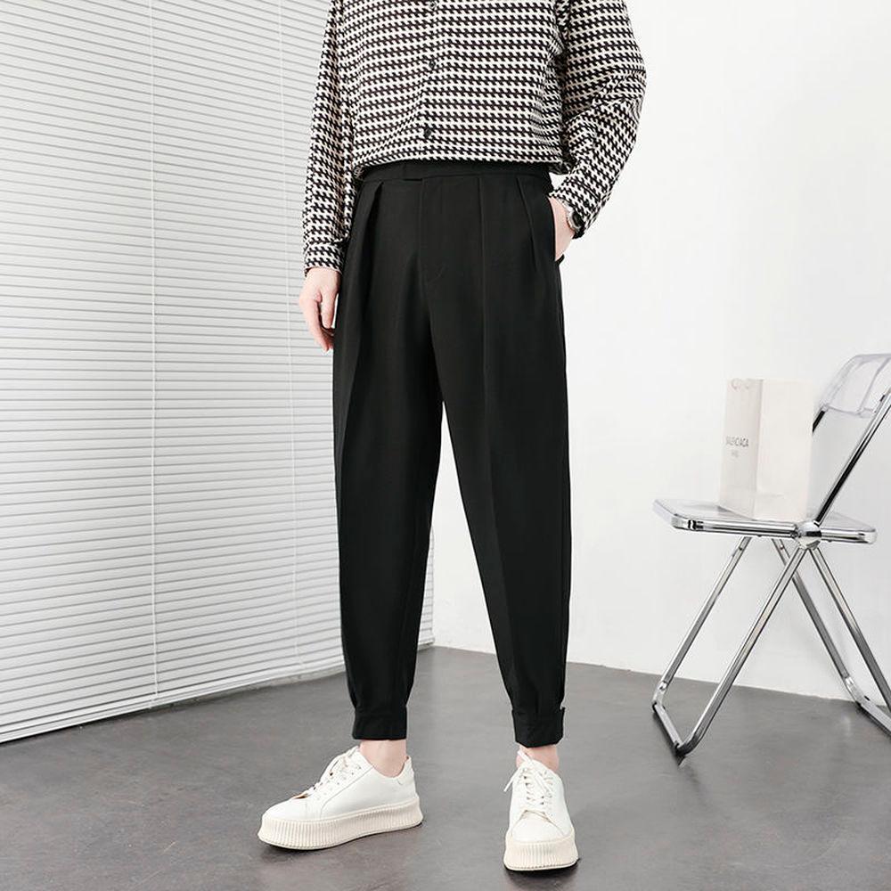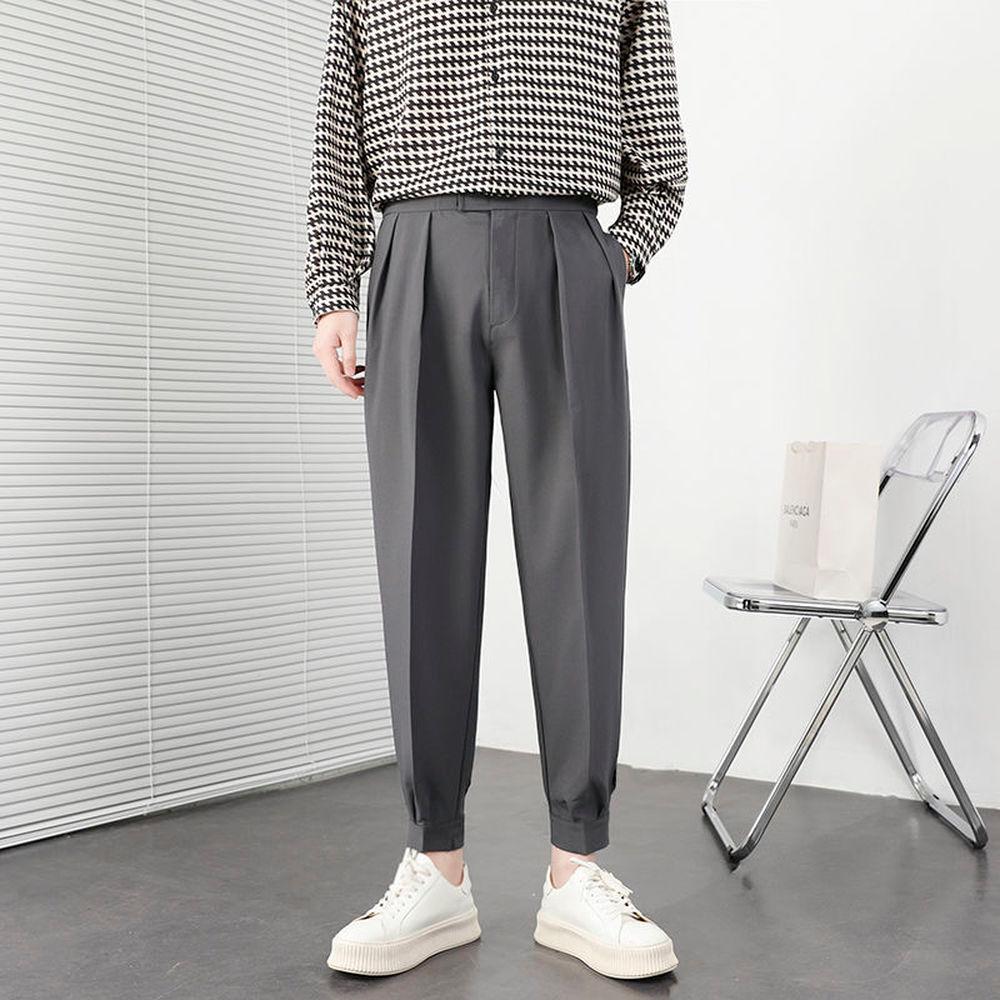 Корейские модные летние брюки уличная мода плиссированные брюки мужские однотонные дышащие легкие тонкие брюки повседневные мужские брюки