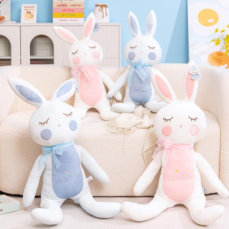 Ультрамягкий и приятный: Эта плюшевая игрушка-кролик, изготовленная из высококачественного плюшевого материала, идеально подходит для обнимания и утешения..