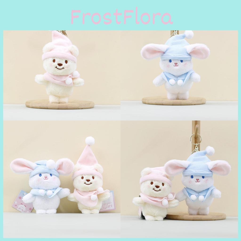 Восхитительный дизайн: Брелок украшен очаровательным мягким мишкой и кроликом, оба в праздничных рождественских шапочках, идеально подходит для сезона праздников.