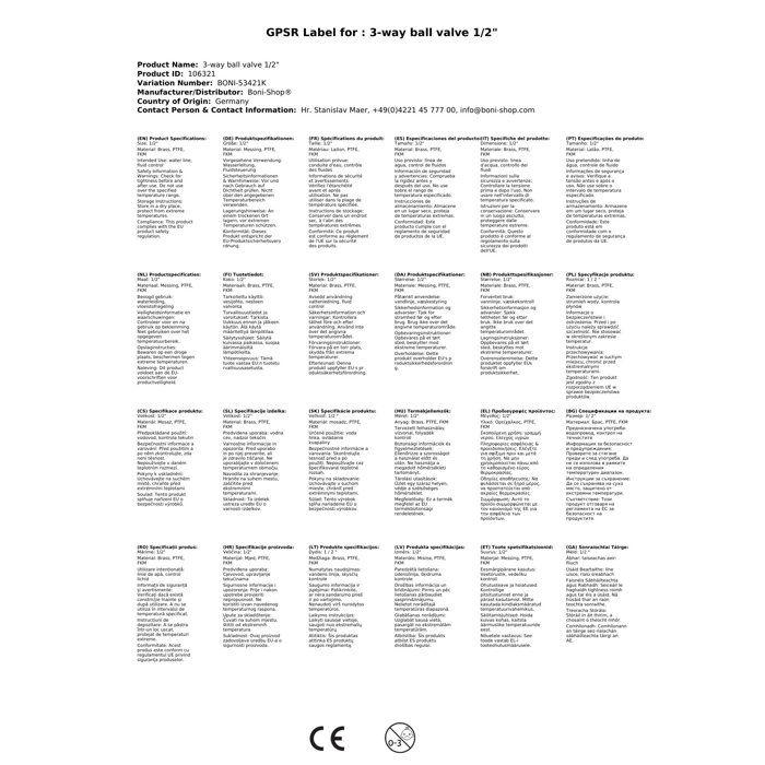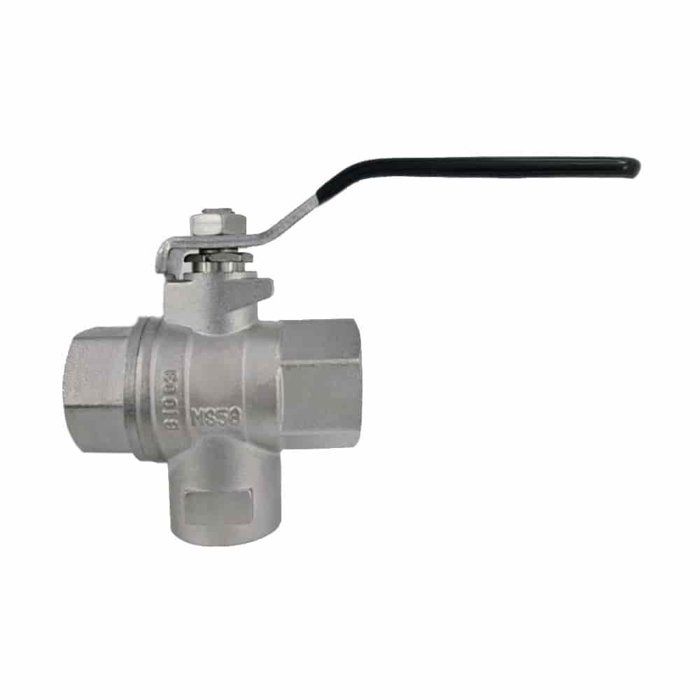 Vanne à bille 3 voies - BONI-SHOP® - 1/2" - Laiton nickelé - Étanchéité PTFE - Température -20°C à +120°C