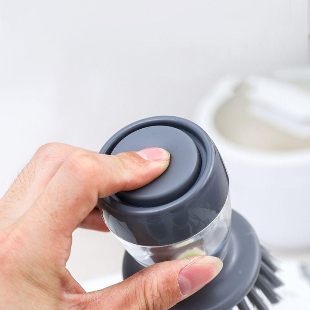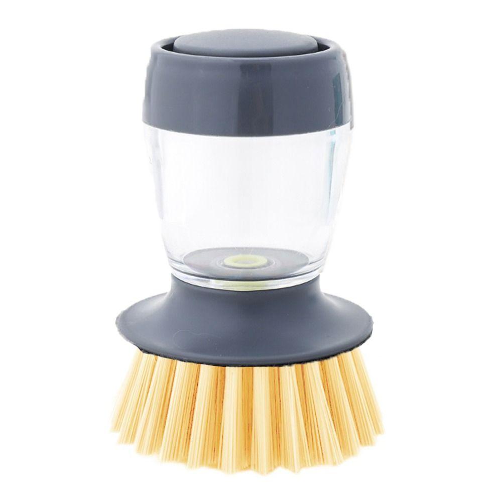 Grey Soap Dispensing Dish Washing Brush Detachable Kitchen Dish Scrubber Bowl