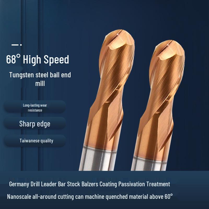 Tungsten Steel Ball Nose End Mill, 68° & 65° CNC Alloy, Extended Reach Cutter