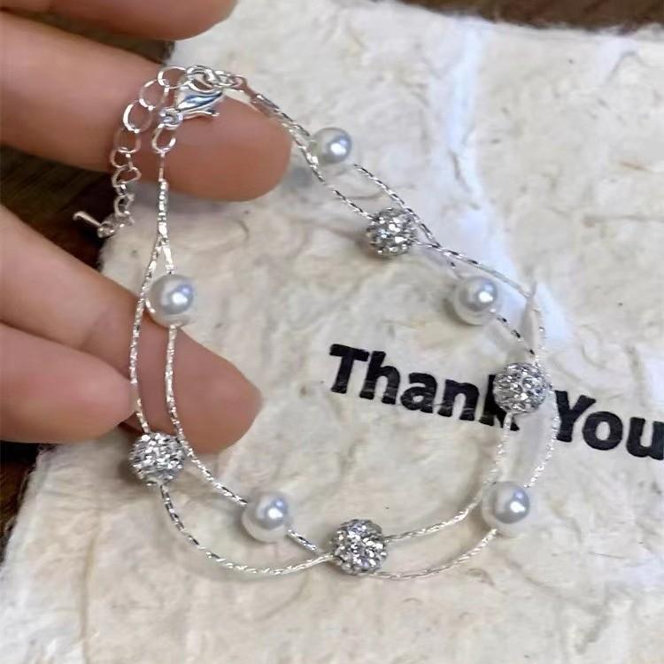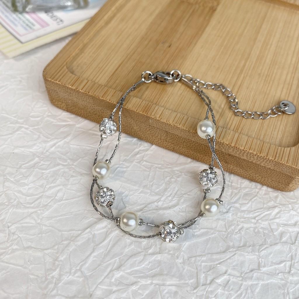 Серебряный двухслойный элегантный жемчужный браслет, шикарные минималистичные украшения из титановой стали для женщин