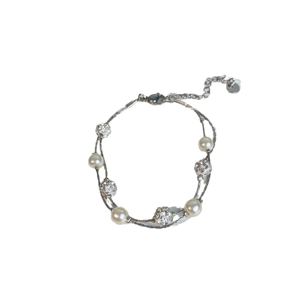 Представляем элегантный двухслойный браслет из серебристого жемчуга, очаровательное украшение в стиле шик-минимализм, изготовленное из премиальной титановой стали.. Этот изысканный браслет создан для женщин, которые ценят сочетание современной элегантности и вневременной изысканности.. Его геометрический дизайн органично переплетается с очарованием сферических элементов, что делает его идеальным аксессуаром для любого случая, будь то повседневная прогулка или элегантное вечернее мероприятие.