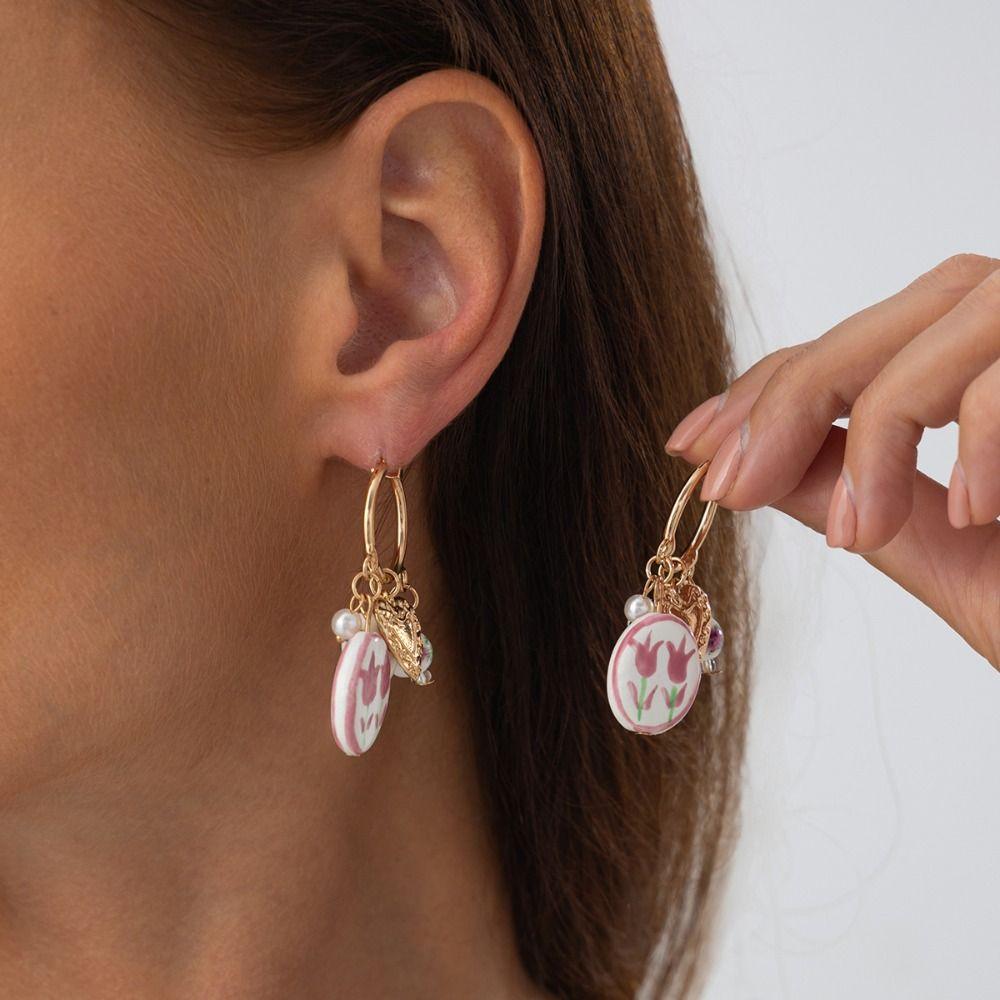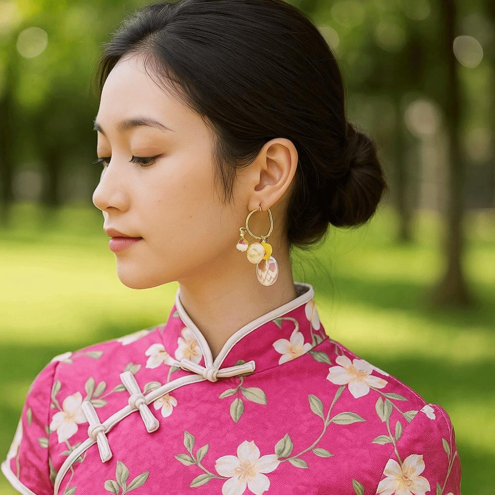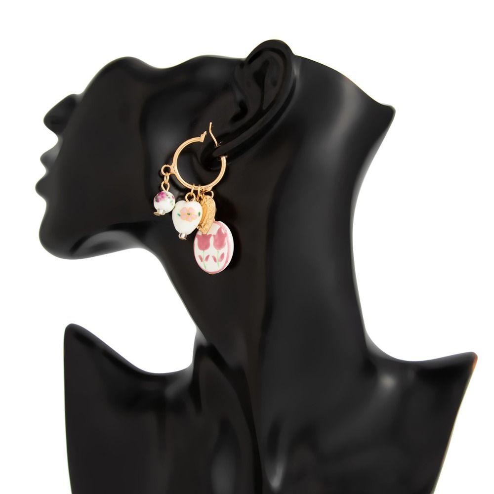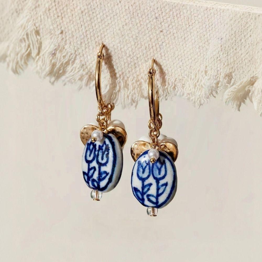 Ювелирные аксессуары Керамические серьги-кольца в новом китайском стиле для девочек