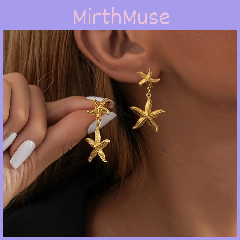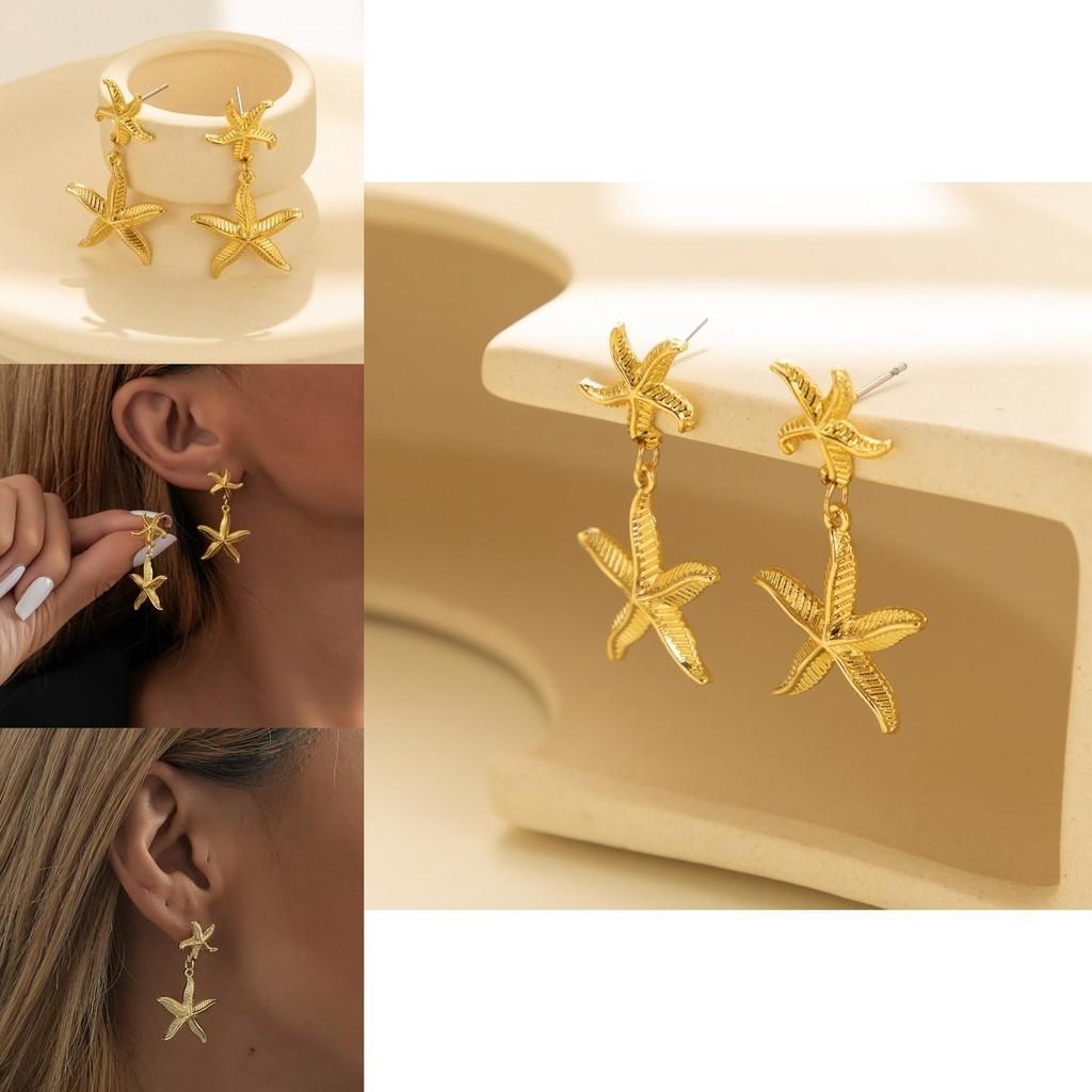 Plated Gold Trendy Starfish Earrings Stylish Gold Alloy Star Shape Earrings For Women For Autumn