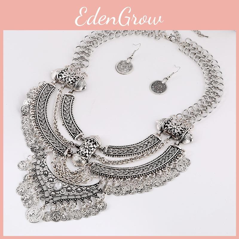 Античная отделка монеты Ожерелье Серьги С крупной цепью Женские элегантные аксессуары