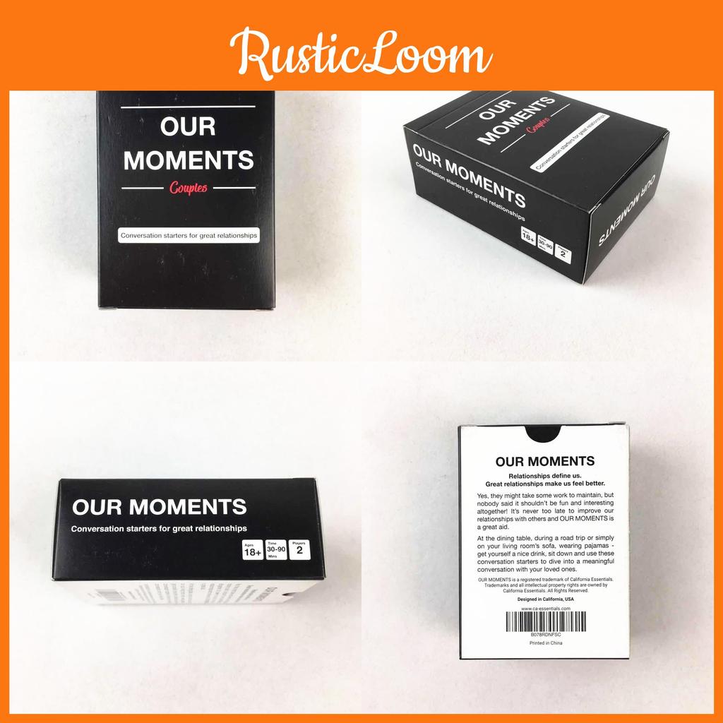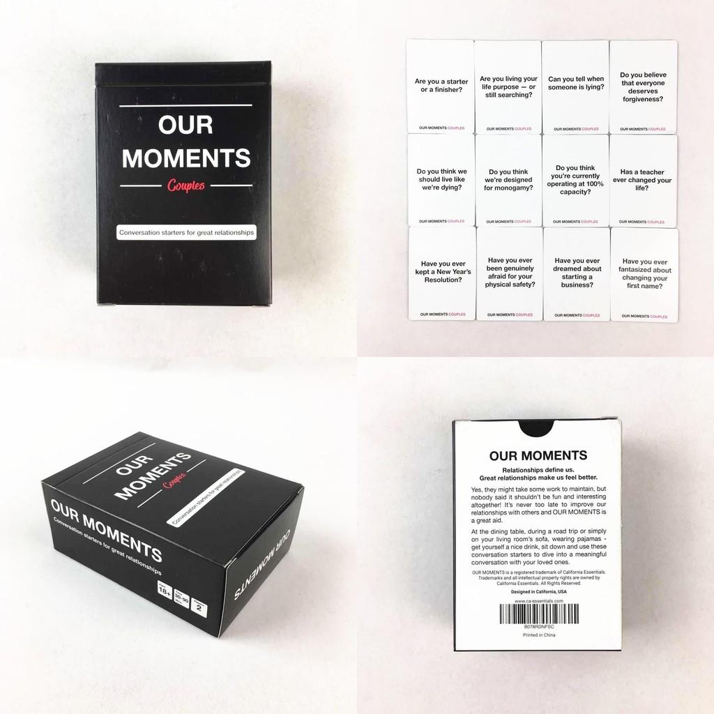 Our Moments — это карточная настольная игра, изготовленная из прочной бумаги, разработанная для удобства обращения и хранения. Идеальная для вечеринок и встреч, эта интерактивная игра способствует активному участию, развивает коммуникативные навыки и пробуждает интерес посредством увлекательных заданий.. Пользователи могут приятно проводить время с друзьями или партнерами, а карты можно протирать сухой тканью, чтобы сохранить их внешний вид.