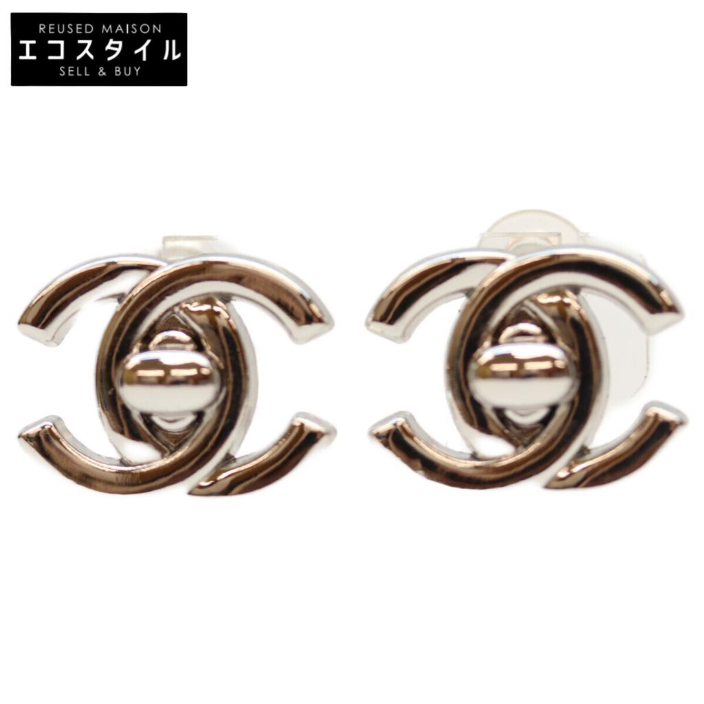 type: 96P Silver Turn Lock CC Logos Earrings