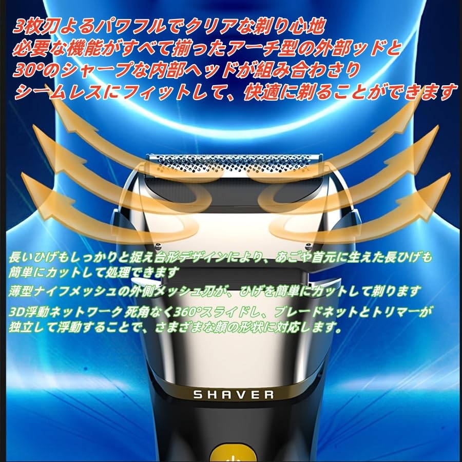 Electric Reciprocating 3 Low Noise IPX7 Large LED Lock Beard Travel Business Electric Gift for Day Men's Shaver, Type, Wet/Dry Use, Blades, Type-C