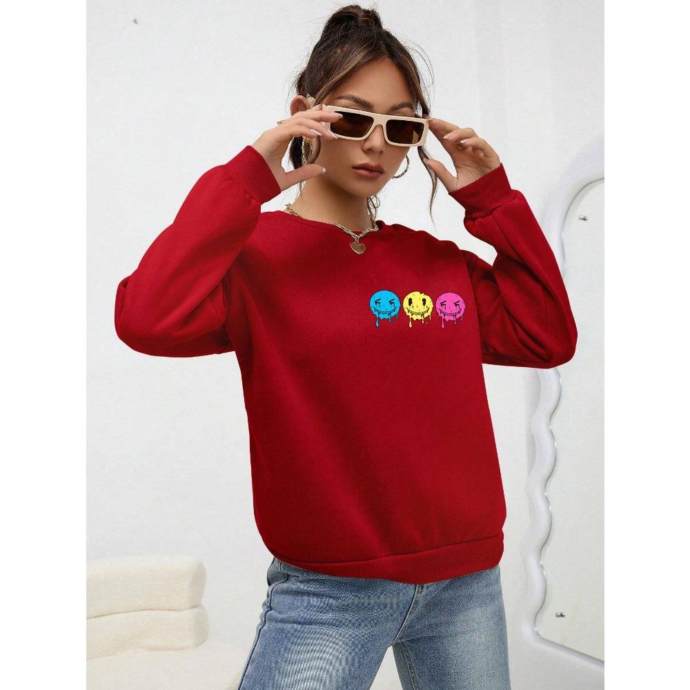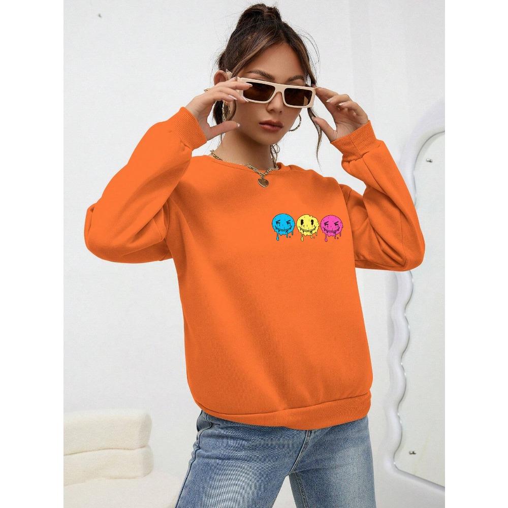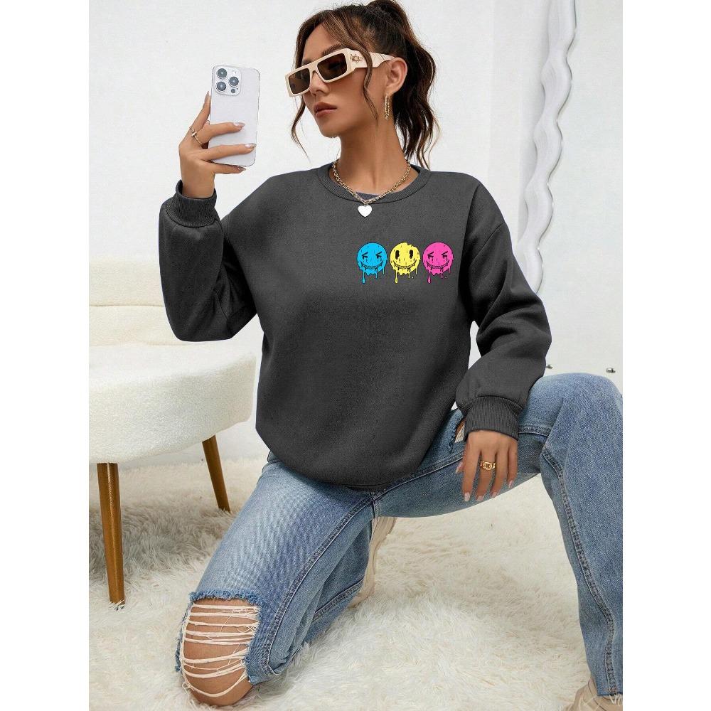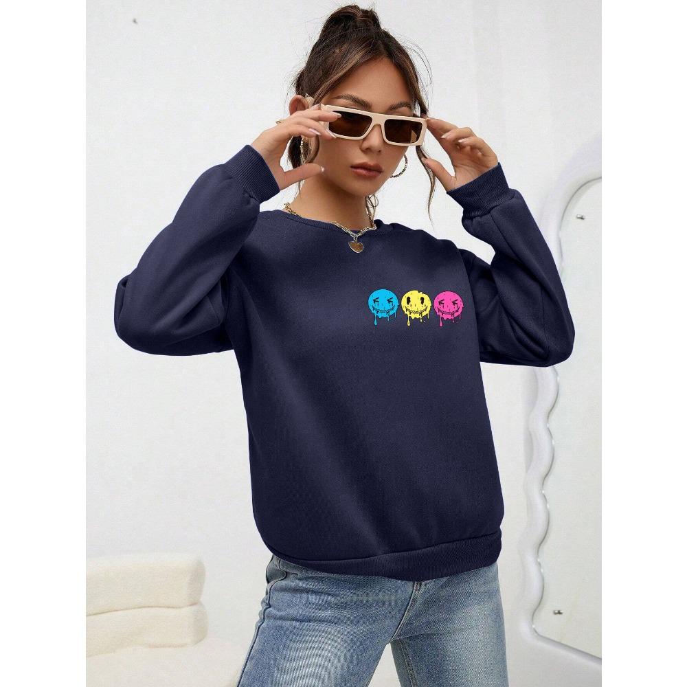 Женский свитшот с забавным принтом улыбающегося лица, осенний спортивный костюм S-4XL, простые удобные топы, повседневная теплая одежда для женщин