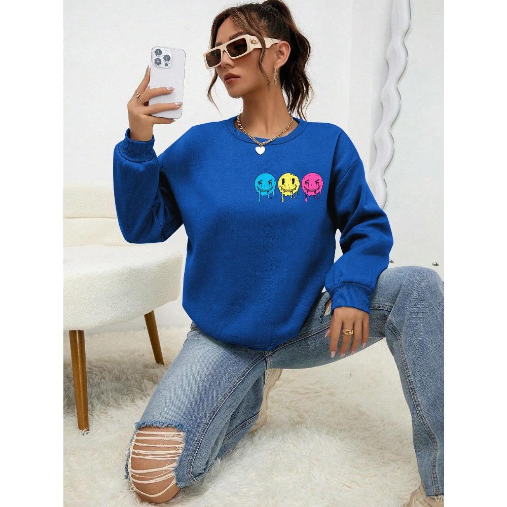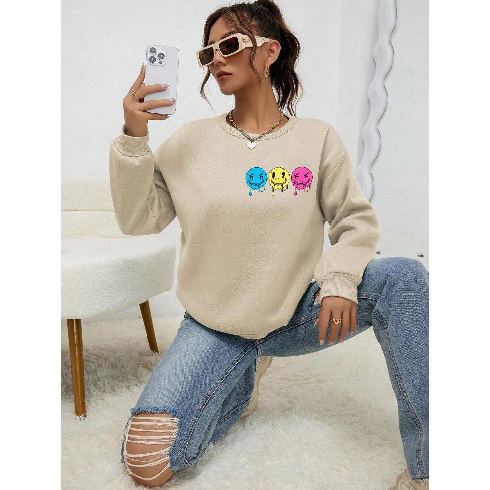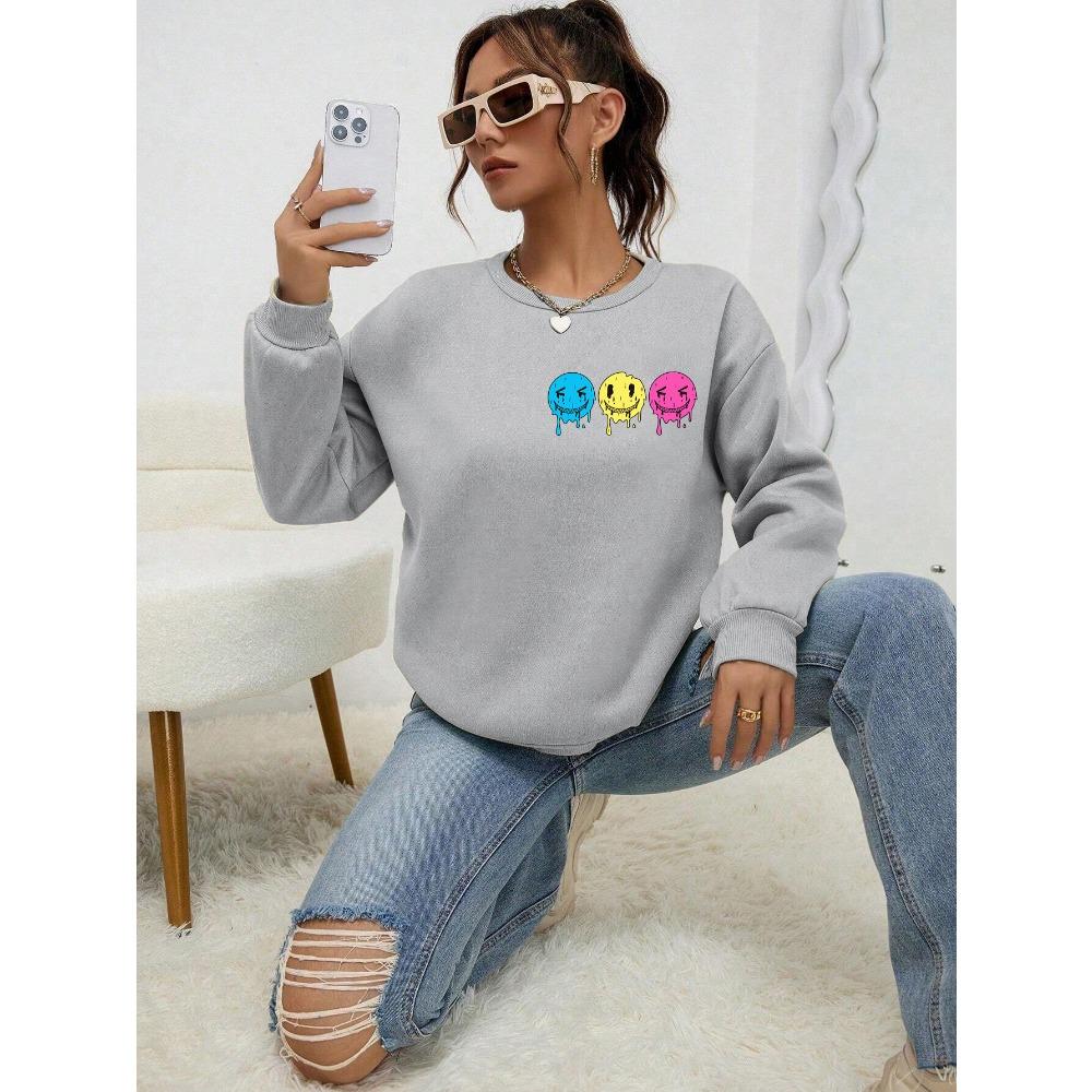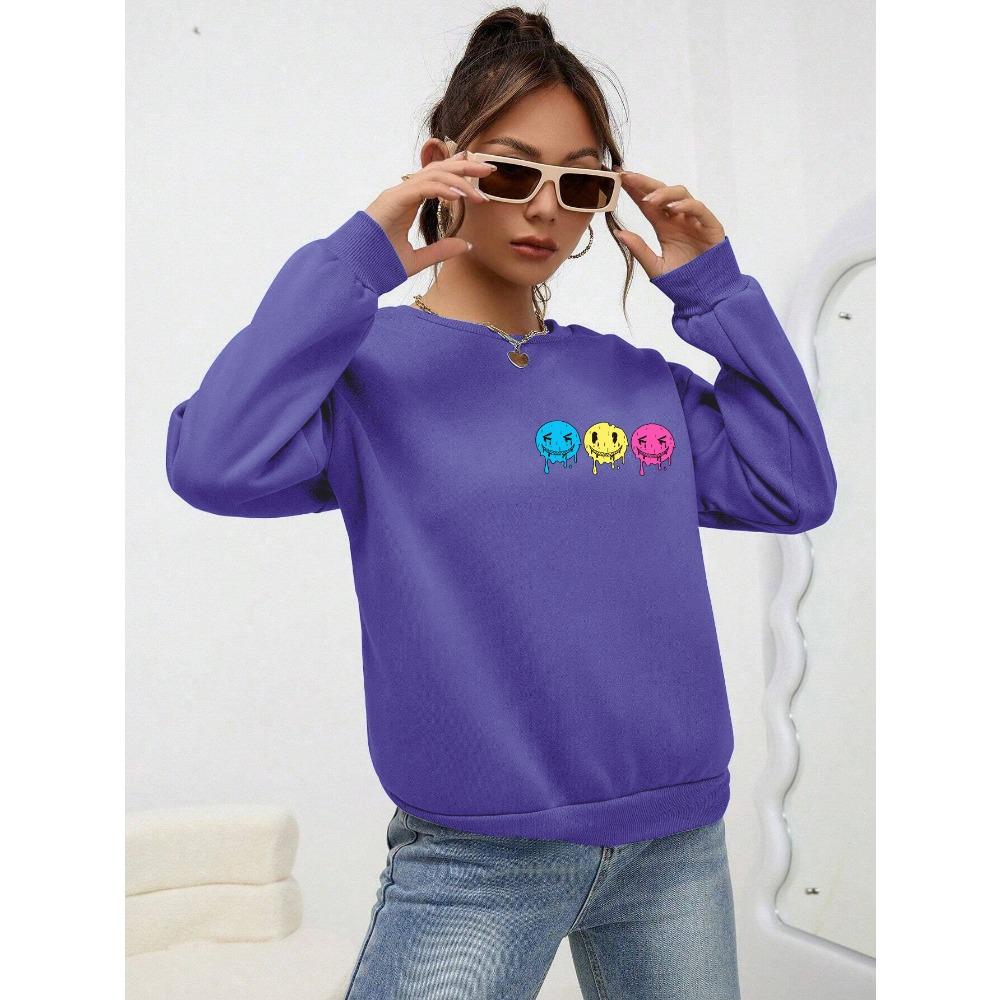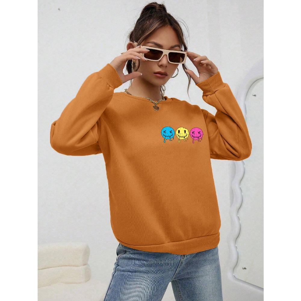 Женский свитшот с забавным принтом улыбающегося лица, осенний спортивный костюм S-4XL, простые удобные топы, повседневная теплая одежда для женщин