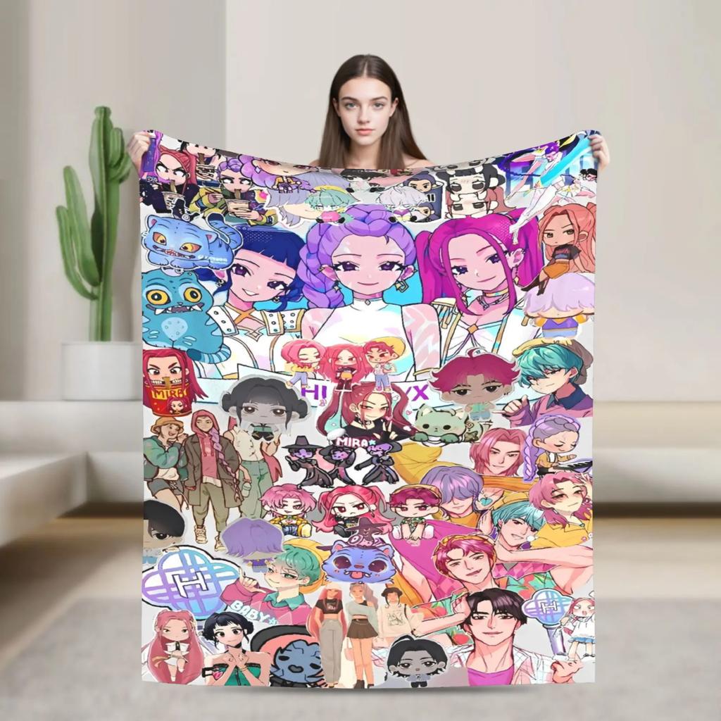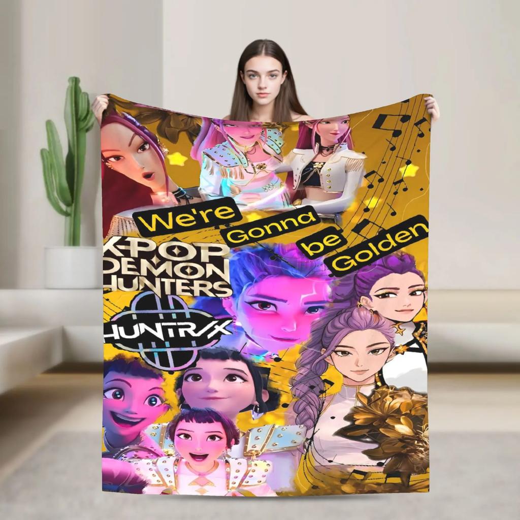 K-pop Охотники на демонов Золотая музыка Фланелевый плед для путешествий, офиса, кровати, дивана и использования на открытом воздухе Теплое эстетичное покрывало