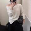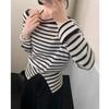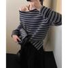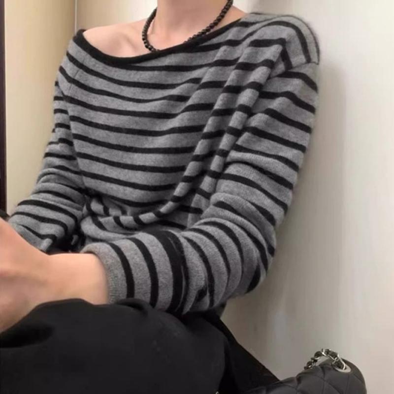 Элегантный Свободный Вязаный Пуловер с Покатым Плечом в Полоску Повседневный Нежный Осенний Женский Модный Топ с Длинным Рукавом Свободный Повседневный Офисный Тонкий