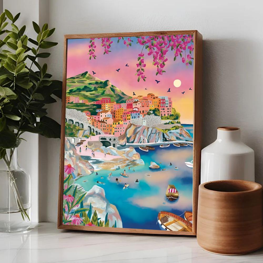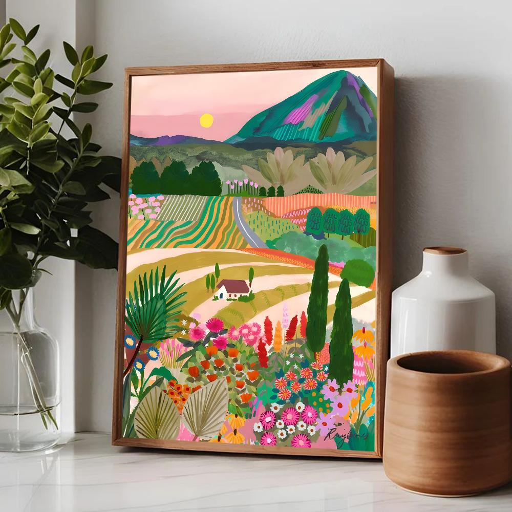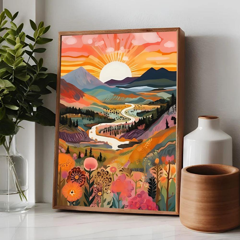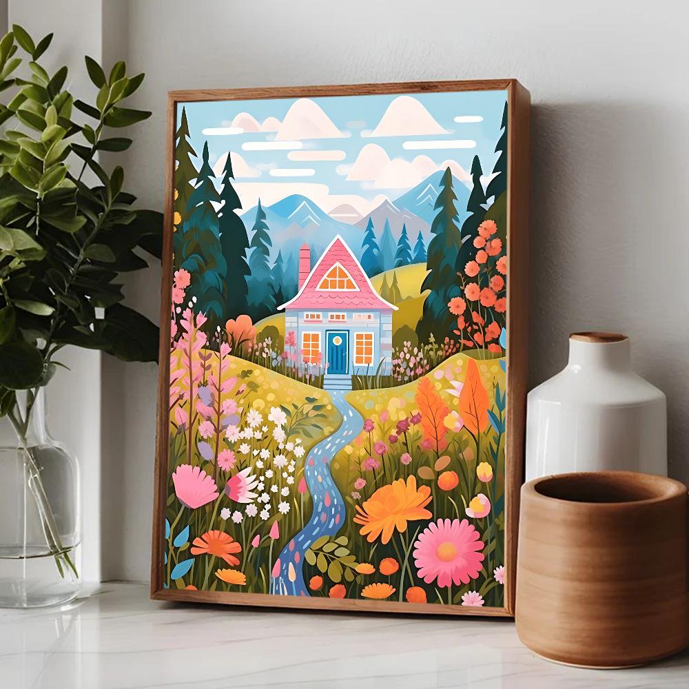 Цветной постер Горы Озеро Цветы Пейзаж Природа Путешествия Декор Постер Качество HD Настенное искусство Ретро постеры для декора дома комнаты