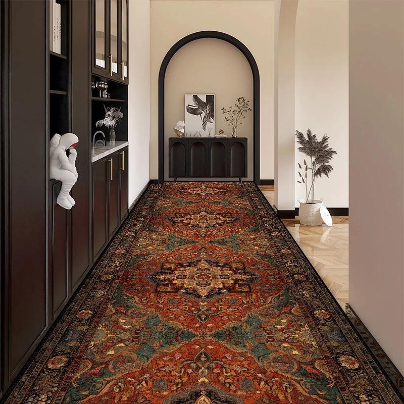 Богемный красный длинный ковер для коридора Роскошное персидское украшение Ковер для прихожей Противоскользящий Легкая чистка Напольный коврик Ковровые дорожки для лестницы