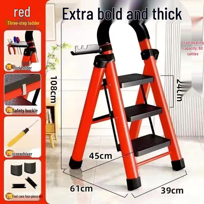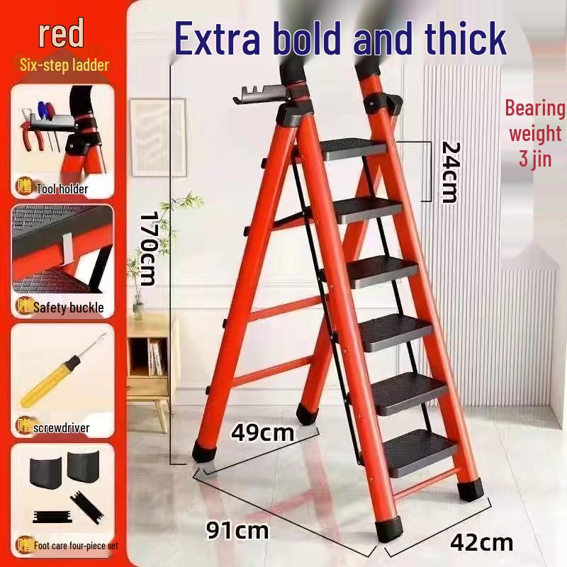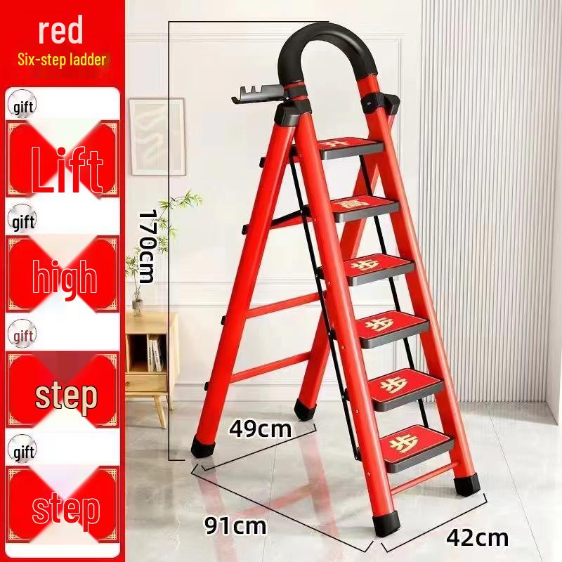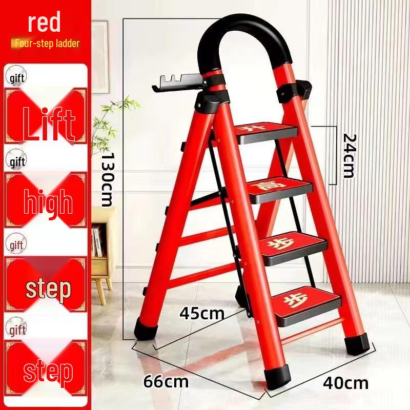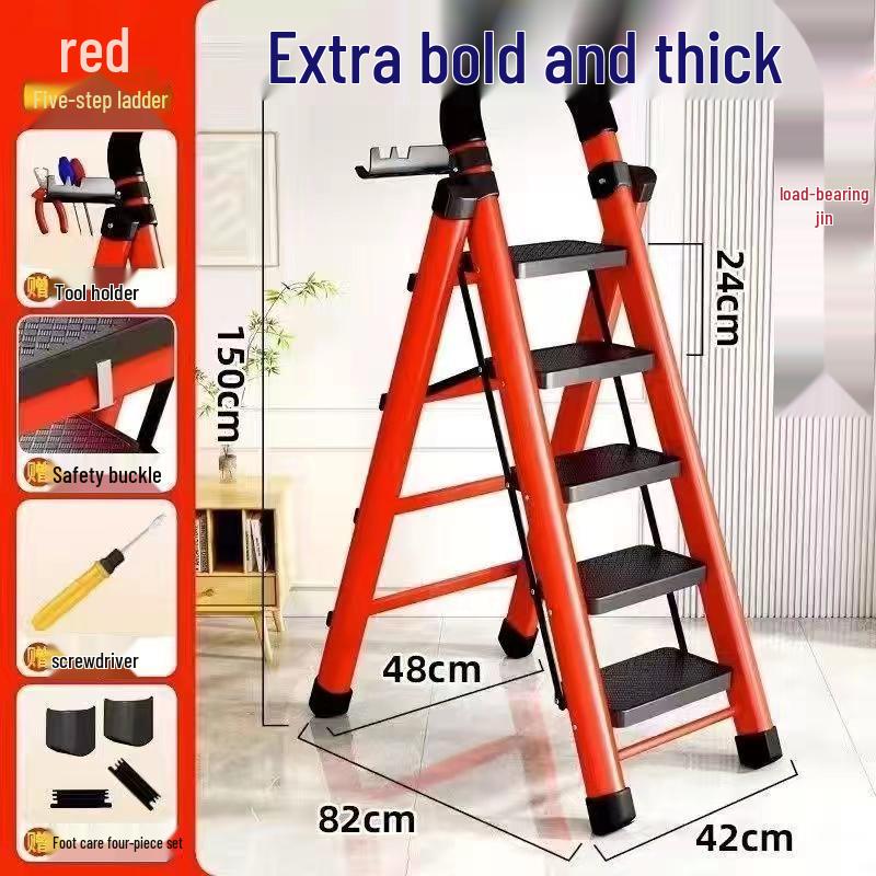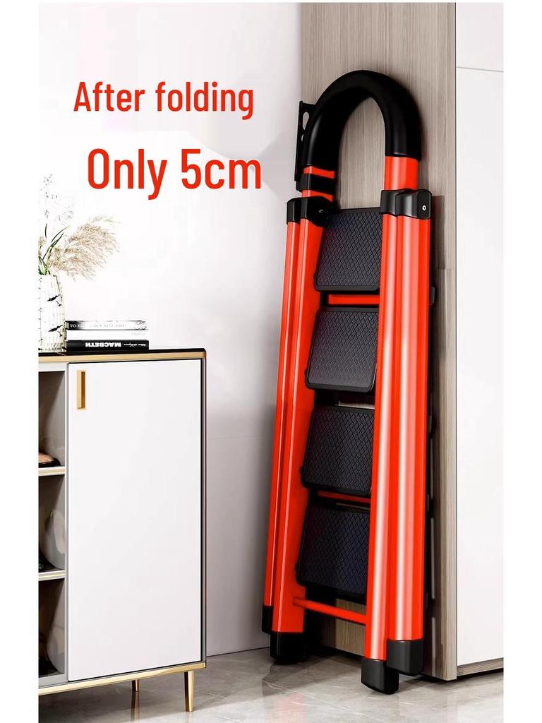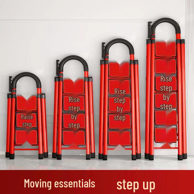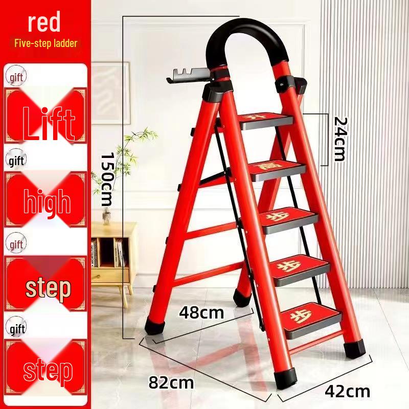 German Red Telescopic Folding A-Frame Ladder, Thickened for Household Use