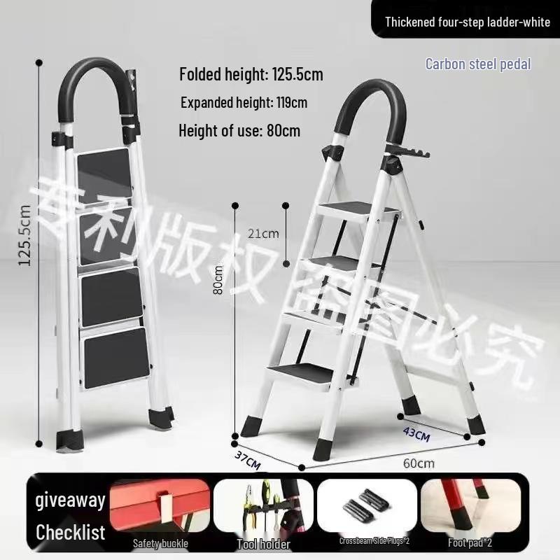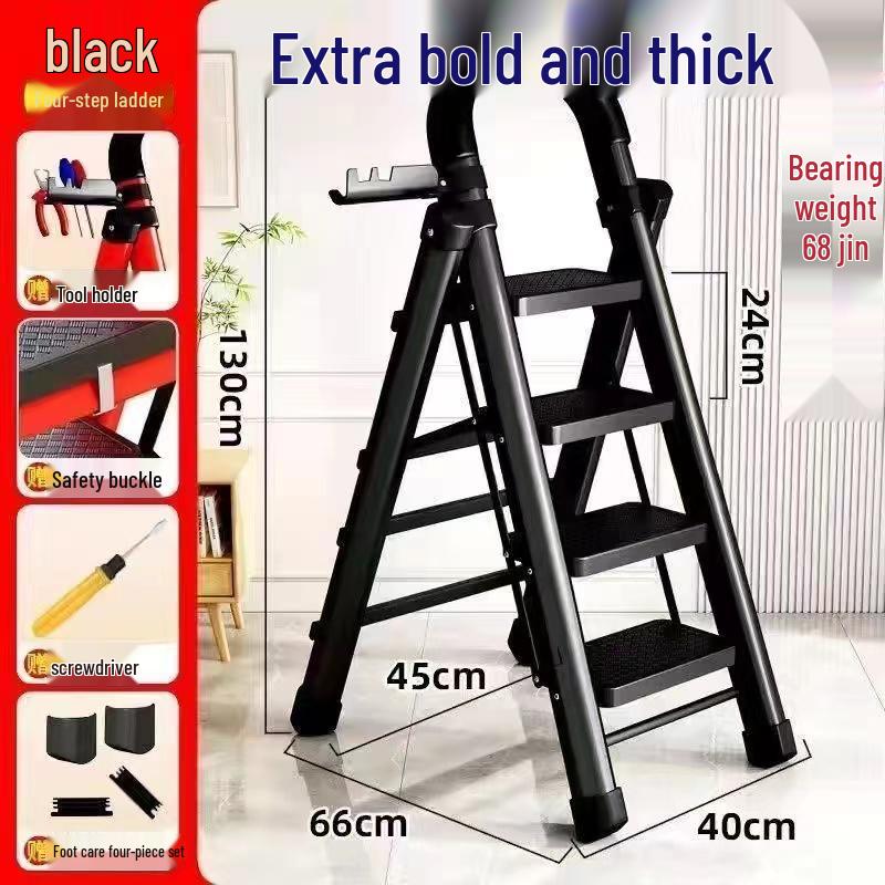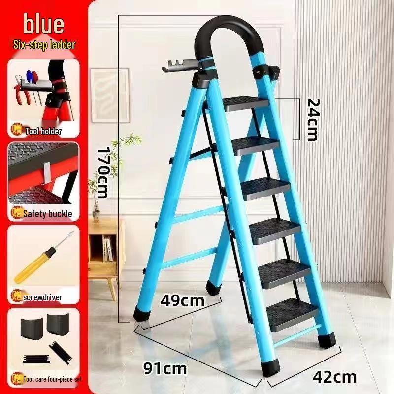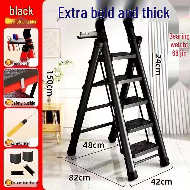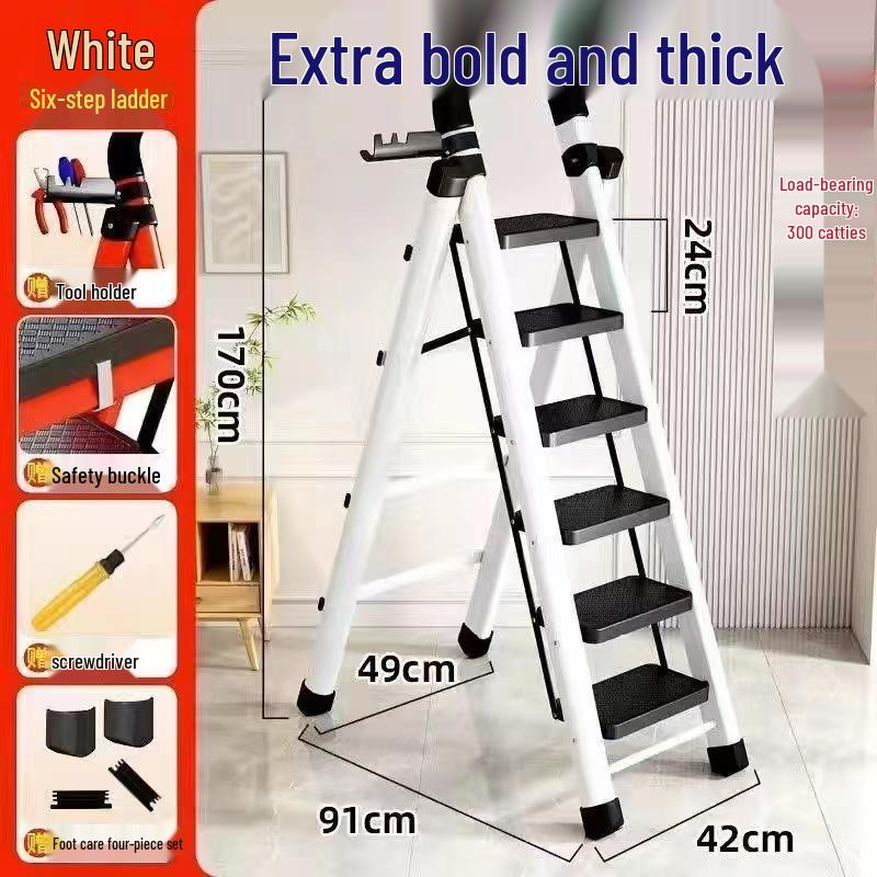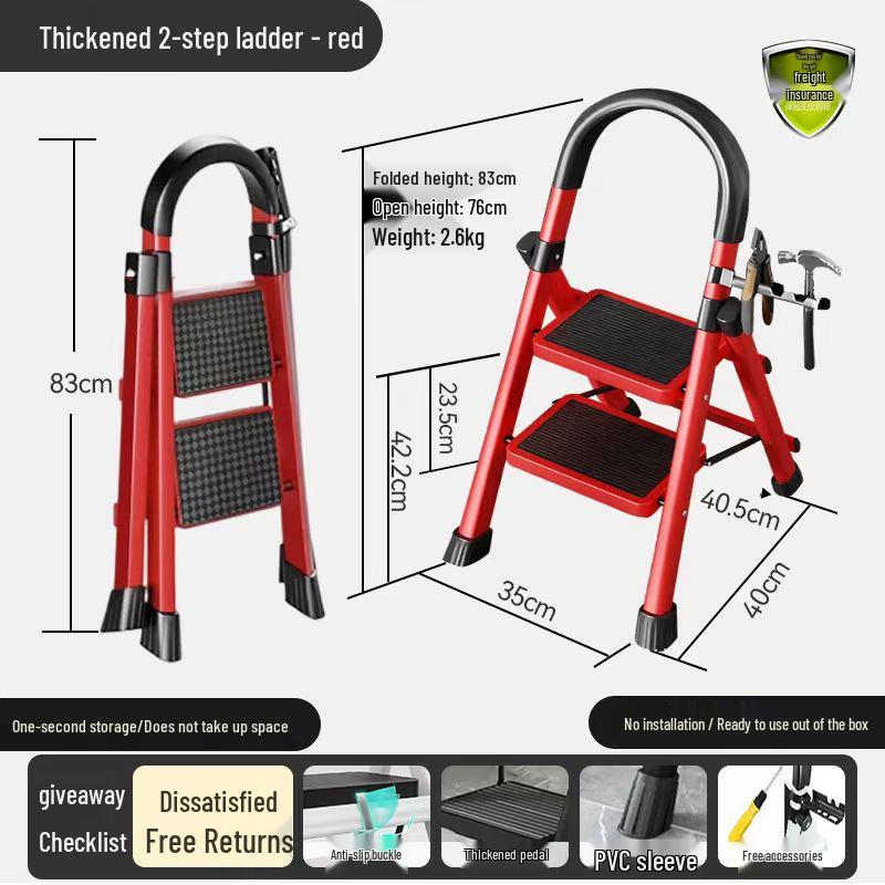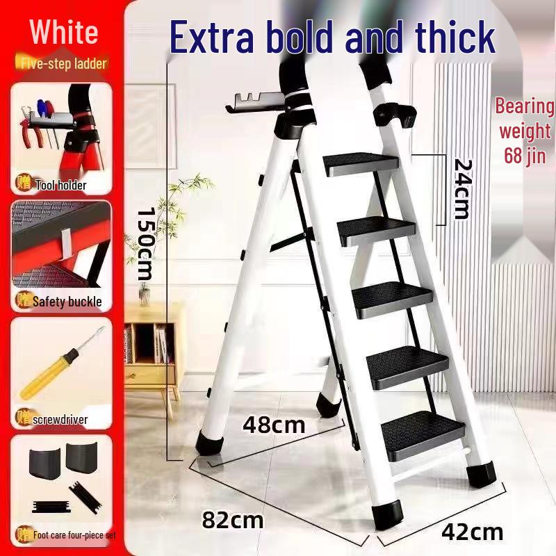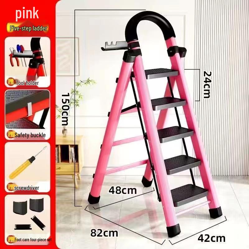 German Red Telescopic Folding A-Frame Ladder, Thickened for Household Use
