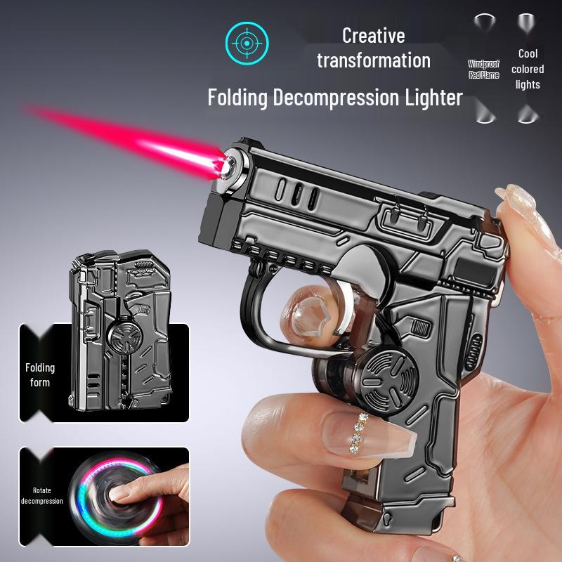 Qunhao Deformable Folding Windproof Lighter - Red Flame, Cool Colorful Lights, Pistol Gyro Design — купить товар онлайн с бесплатной доставкой до всему миру!