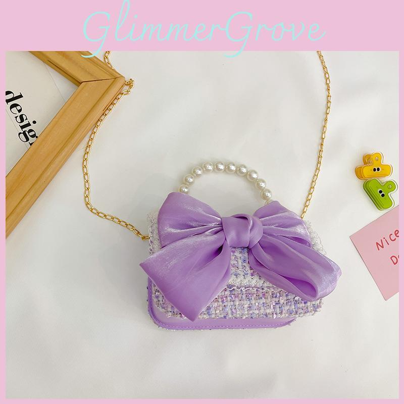 Cotton Fashion Girls Bag With Flower Pattern And Pearl Decor For Outings Casual