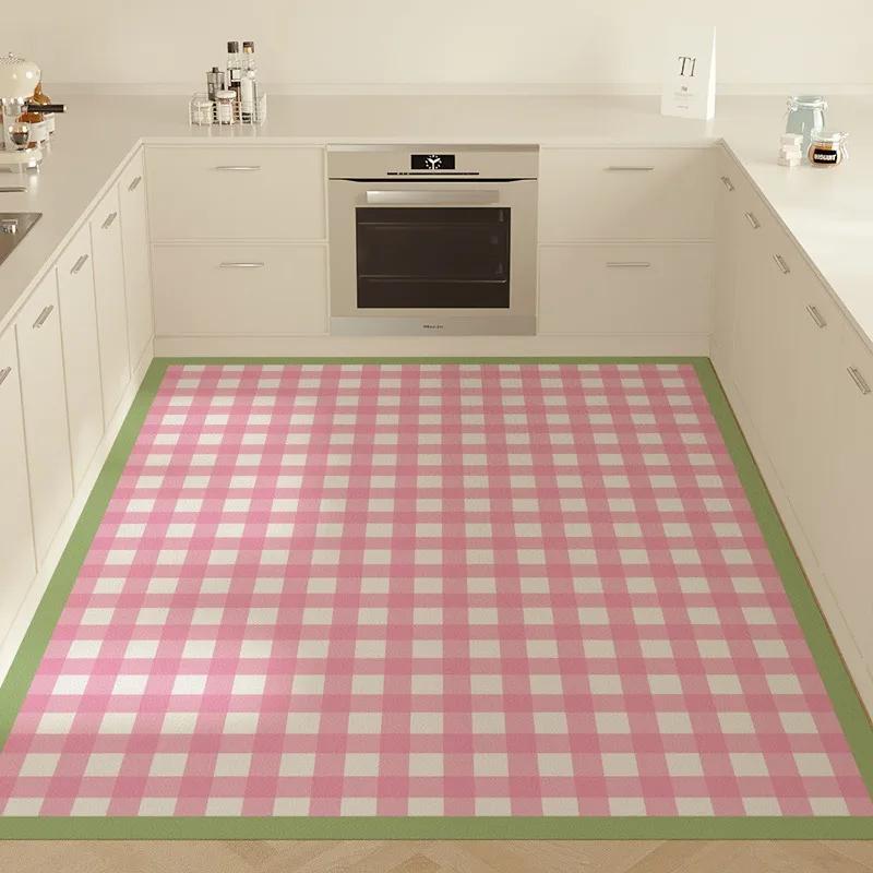 Коврик для Кухни Напольный Коврик Большой ПВХ Водонепроницаемый Кожаные Коврики Маслостойкие Нескользящие Коврики для Ног Зеленая Клетка Домашний Декор Ковры