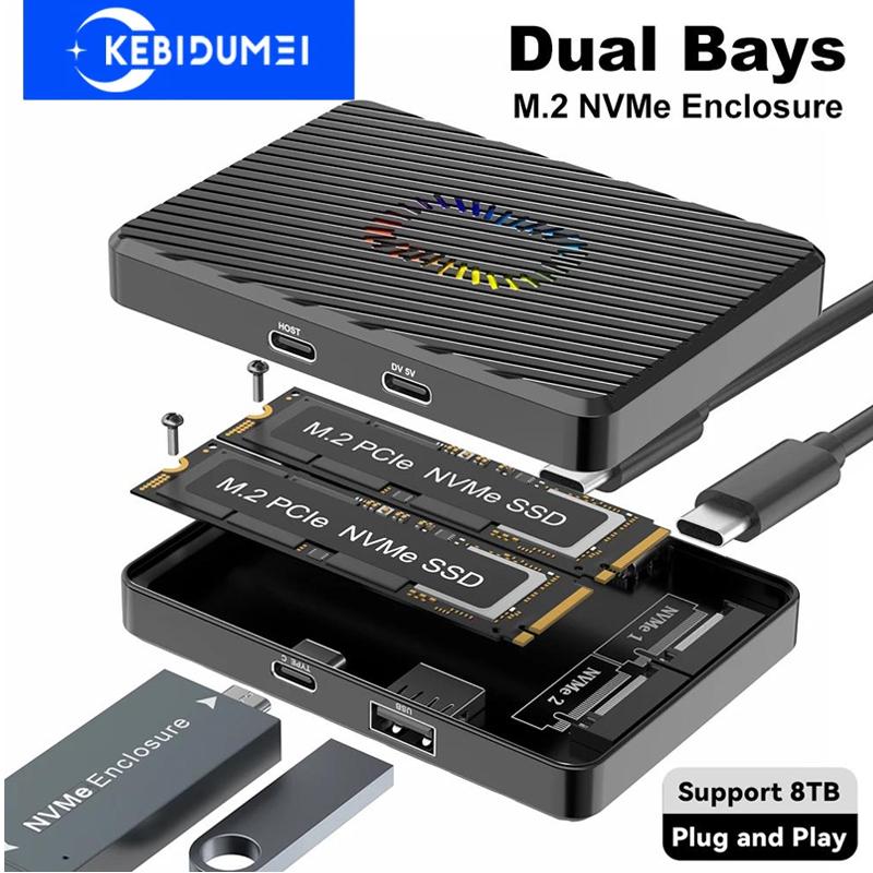 Двухсекционный корпус для M2 NVME SSD с RGB 10 Гбит/с PCIe NVME док-станция USB3.2 GEN2 Твердотельный M.2 Адаптер для бокса для жесткого диска для ПК — купить товар онлайн с бесплатной доставкой по всему миру!