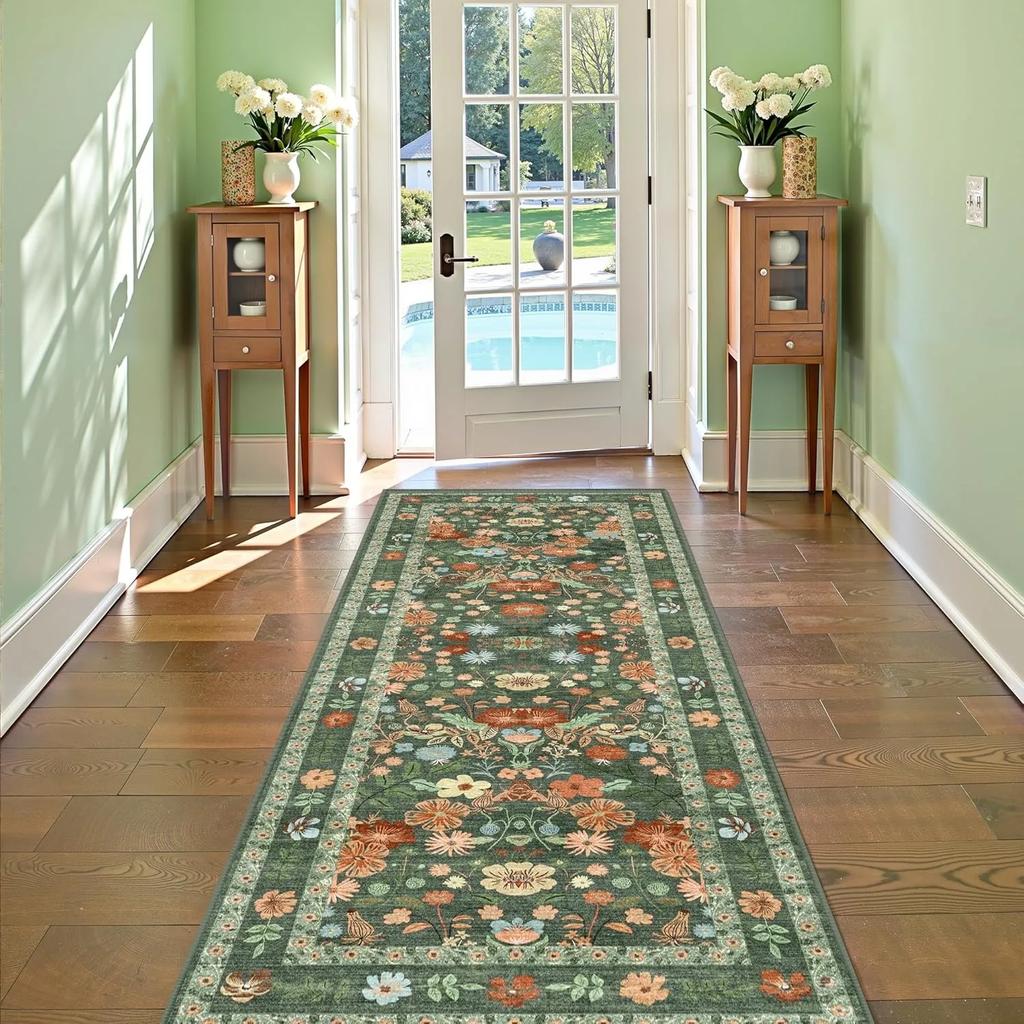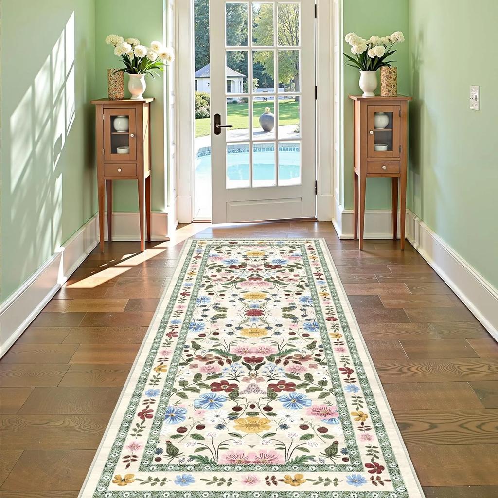 Ковер-дорожка с цветочным рисунком для прихожей, мягкий ковер с ботаническим рисунком, длинный ковер для спальни, нескользящий напольный коврик, машинная стирка, кухонный ковер, украшение для дома