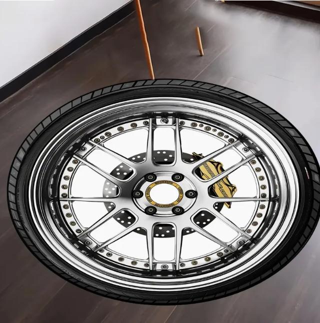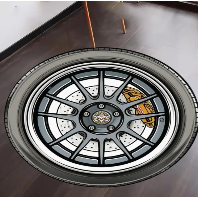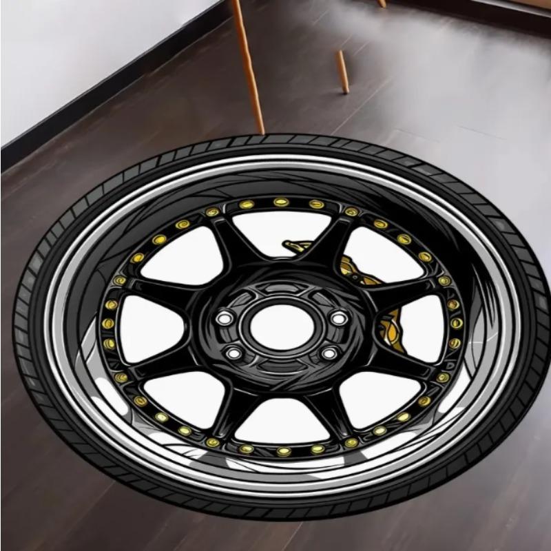 Круглый коврик с дизайном автомобильной шины, нескользящий, для офисной комнаты, спальни, кемпинга, Рождества, Хэллоуина, Дня благодарения, выпускного, домашнее украшение