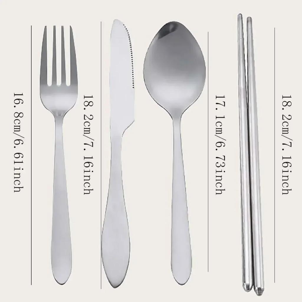 1 Набор Палочки для еды из нержавеющей стали Ложка Вилка Нож для стейка с чехлом для хранения Дорожный набор столовых приборов для кемпинга Портативная посуда