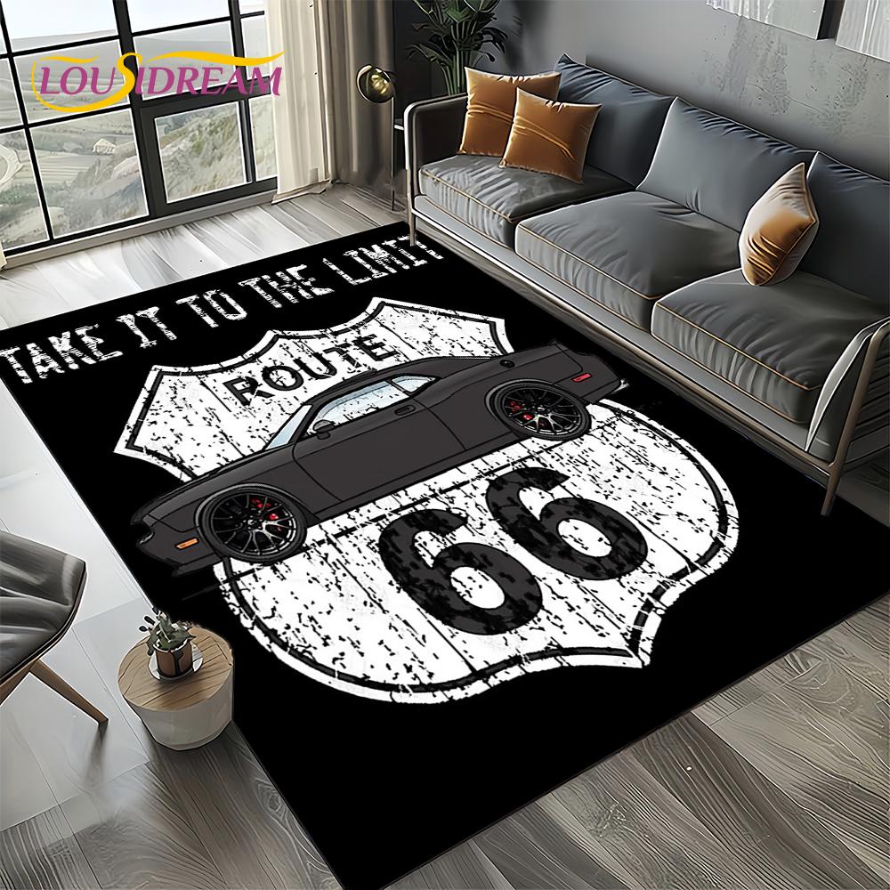 Ретро Америка Исторический Маршрут 66,Мать Дорога,Мать ДорогаКовер для Гостиной Спальни Дома Дивана,Прикроватный Коврик Нескользящий Коврик для Пола
