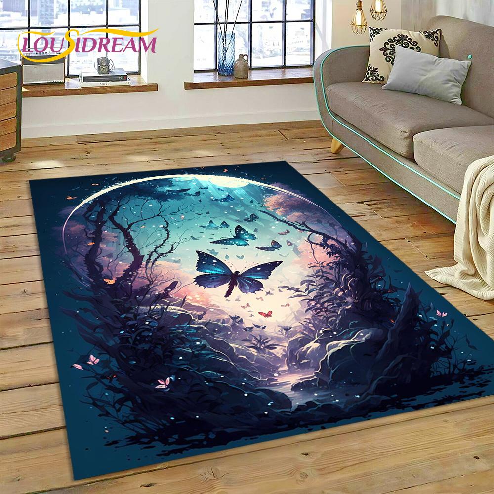 Cartoon Flower Fantasy Butterfly HD Carpet Rug for Home Living Room Bedroom Sofa Doormat Decor,Kids Area Rug Non-slip Floor Mat — купить товар онлайн с бесплатной доставкой по всему миру!
