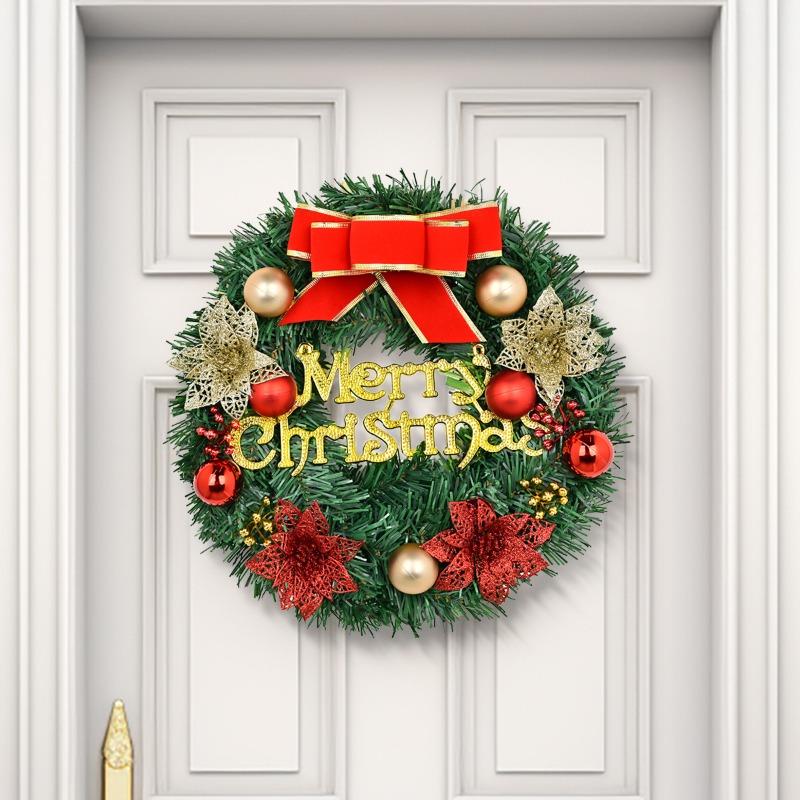 Рождественский декоративный венок диаметром 30 см, пластиковый материал, украшение для дома, ротанговый круг, подвеска для домашнего декора