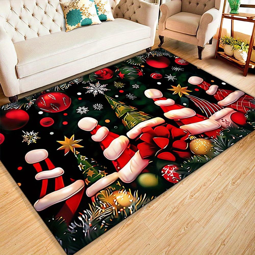 Праздничный Рождественский Декоративный Ковер с Дизайном Санта-Клауса, Прочный Ковер из Кристаллического Бархата для Гостиной, Прихожей,