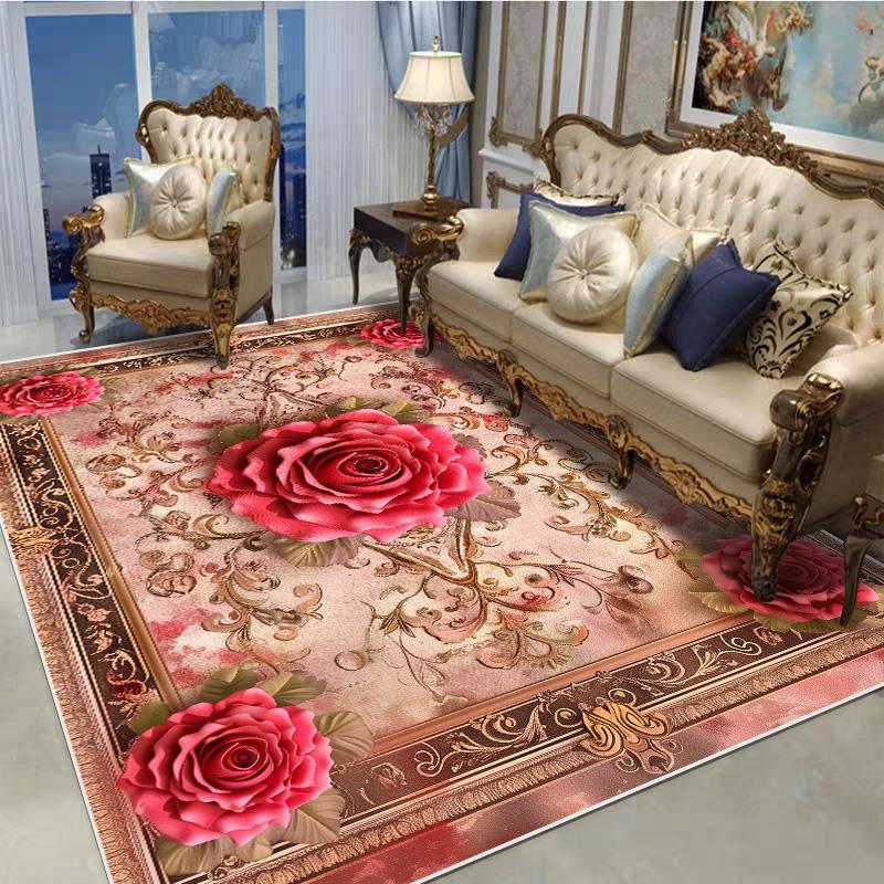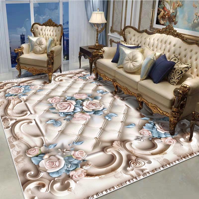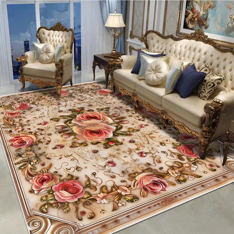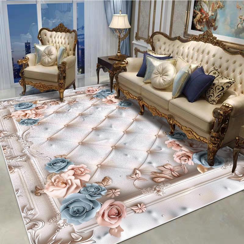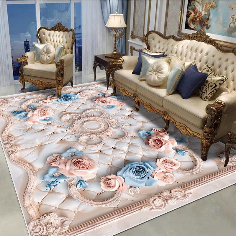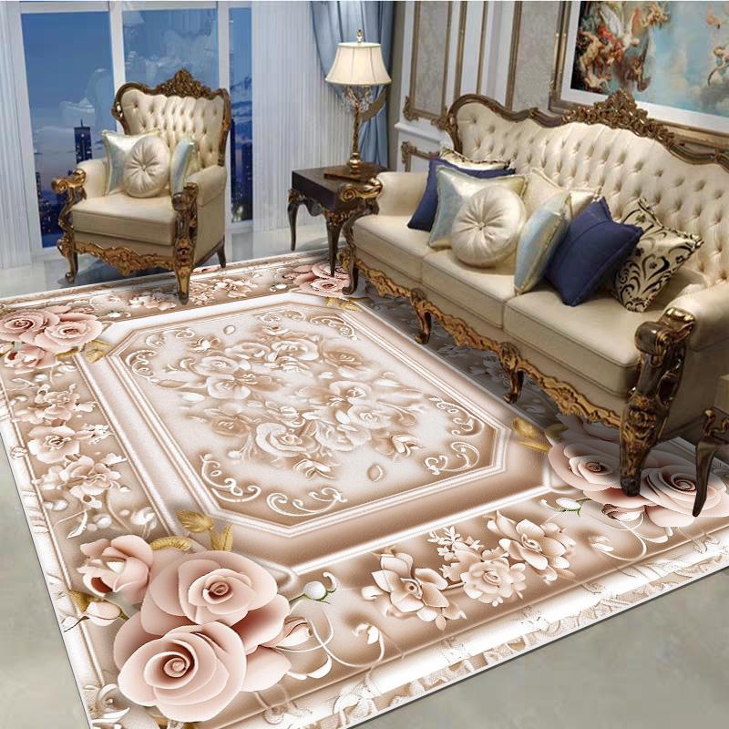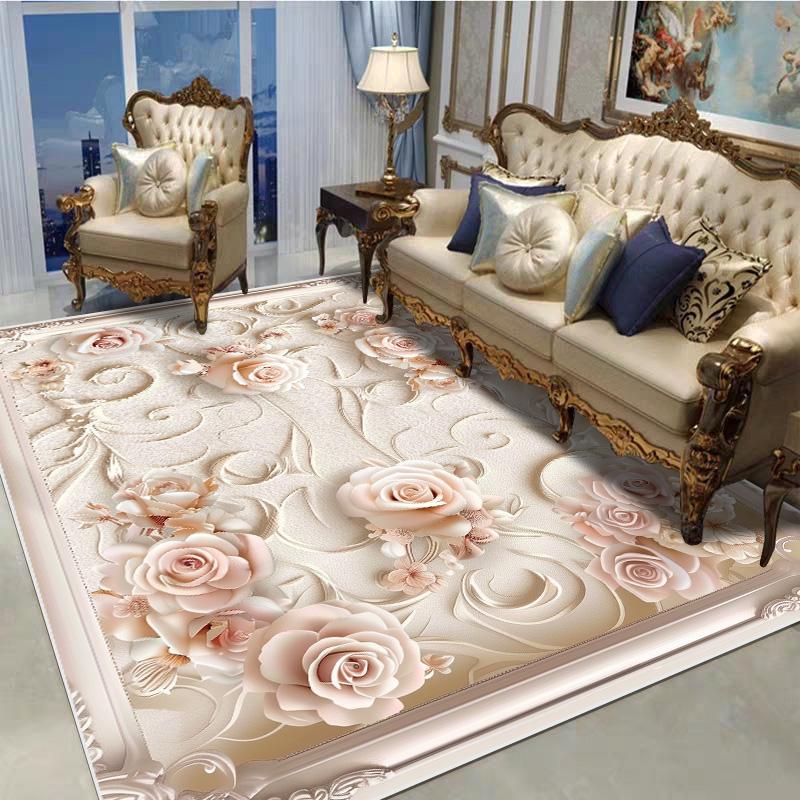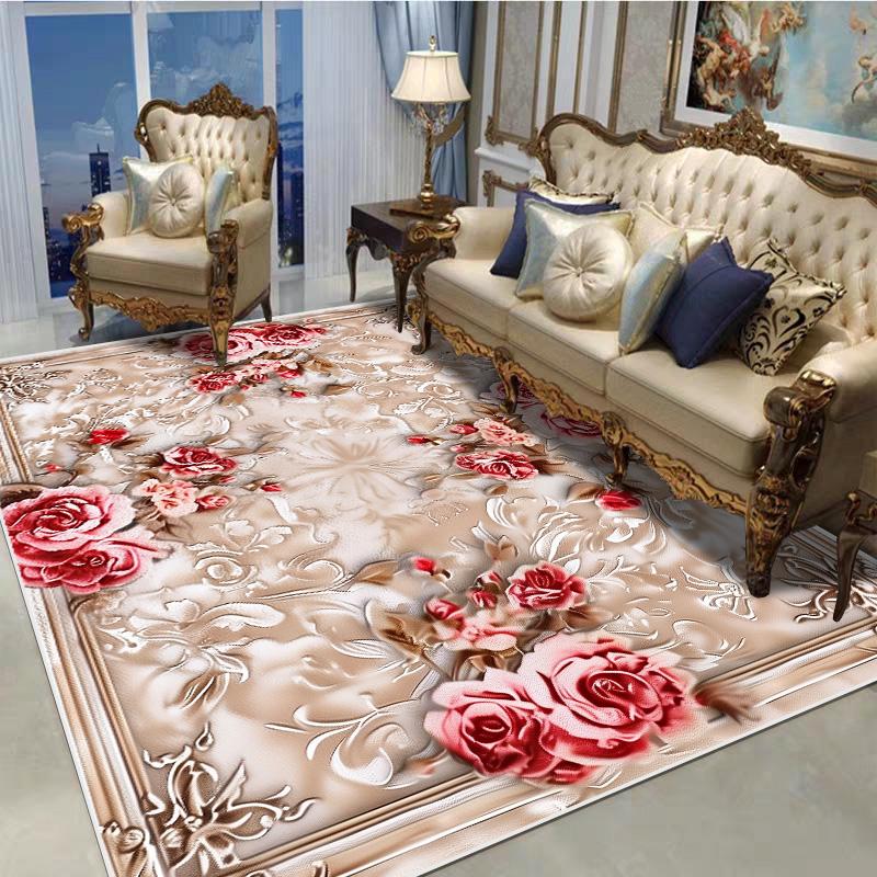 Декоративный ковер в европейском стиле для гостиной, с цветочным узором, большого размера, нескользящий, коврик для входной двери, моющийся, настраиваемый