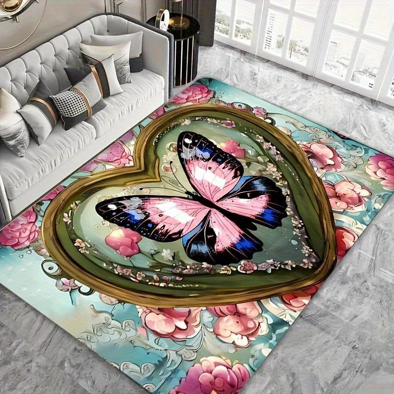 Comfortable Crystal velvet Rug 1pc Crystal Butterfly Heart Design Area Rug, Machine Washable, Non-Slip, Versat