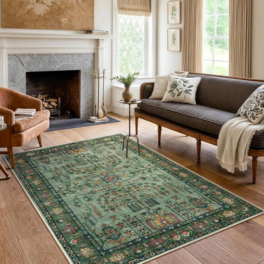 Зеленый ковер для гостиной, ковер с растениями и цветами, машинная стирка, нескользящий коврик, ковры для украшения дома, для спальни, прикроватный коврик для пола