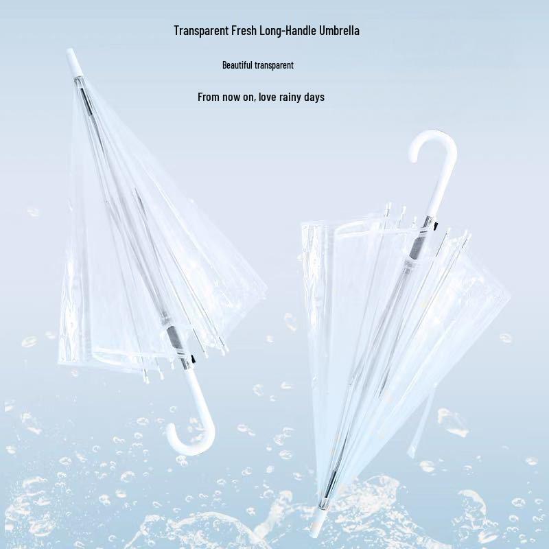 Прозрачный автоматический белый зонт с длинной ручкой - Бесплатная доставка